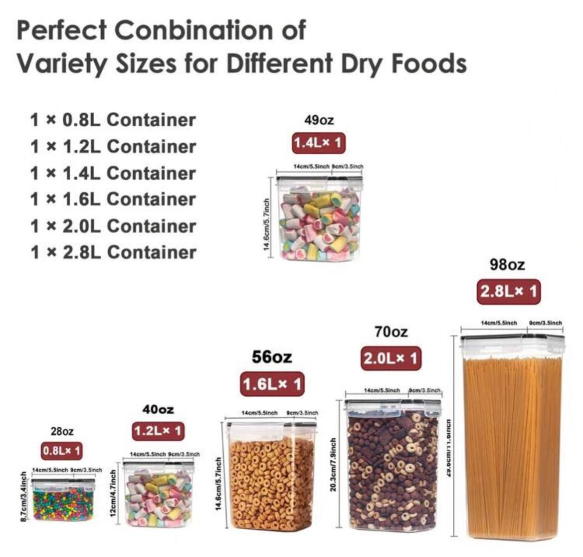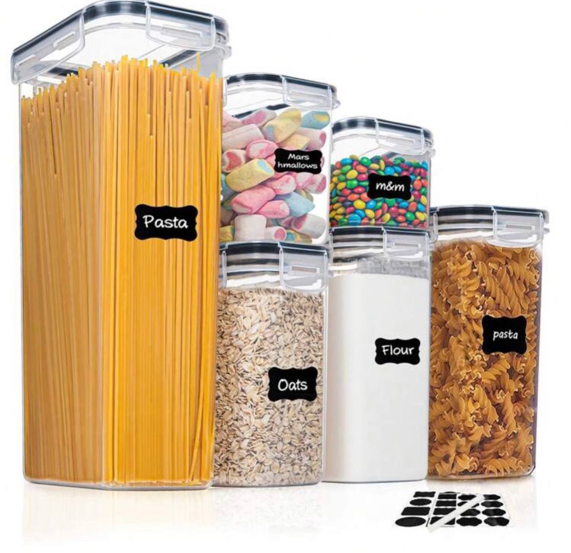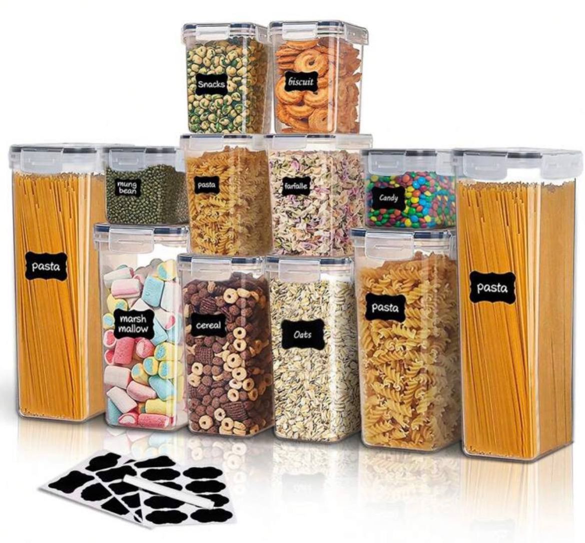 سيت حاوية 12 قطعة _ THELIFE حاوية تخزين طعام محكمة الإغلاق مع أغطية، حاويات تخزين للمطبخ، حاويات تخزين بلاستيكية للتنظيم والتخزين في المطبخ والمخزن، برطمانات طعام جاف للدقيق والسكر والحبوب. تشمل ملصقات وقلم تحديد، آمنة للغسل في غسالة الأطباق.
