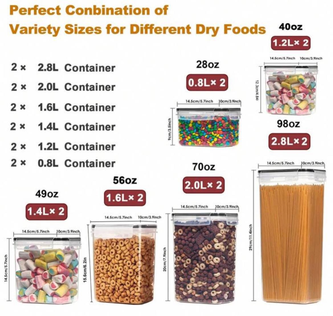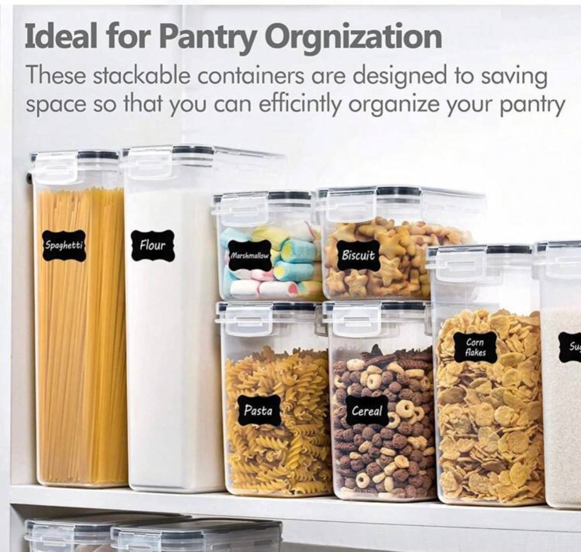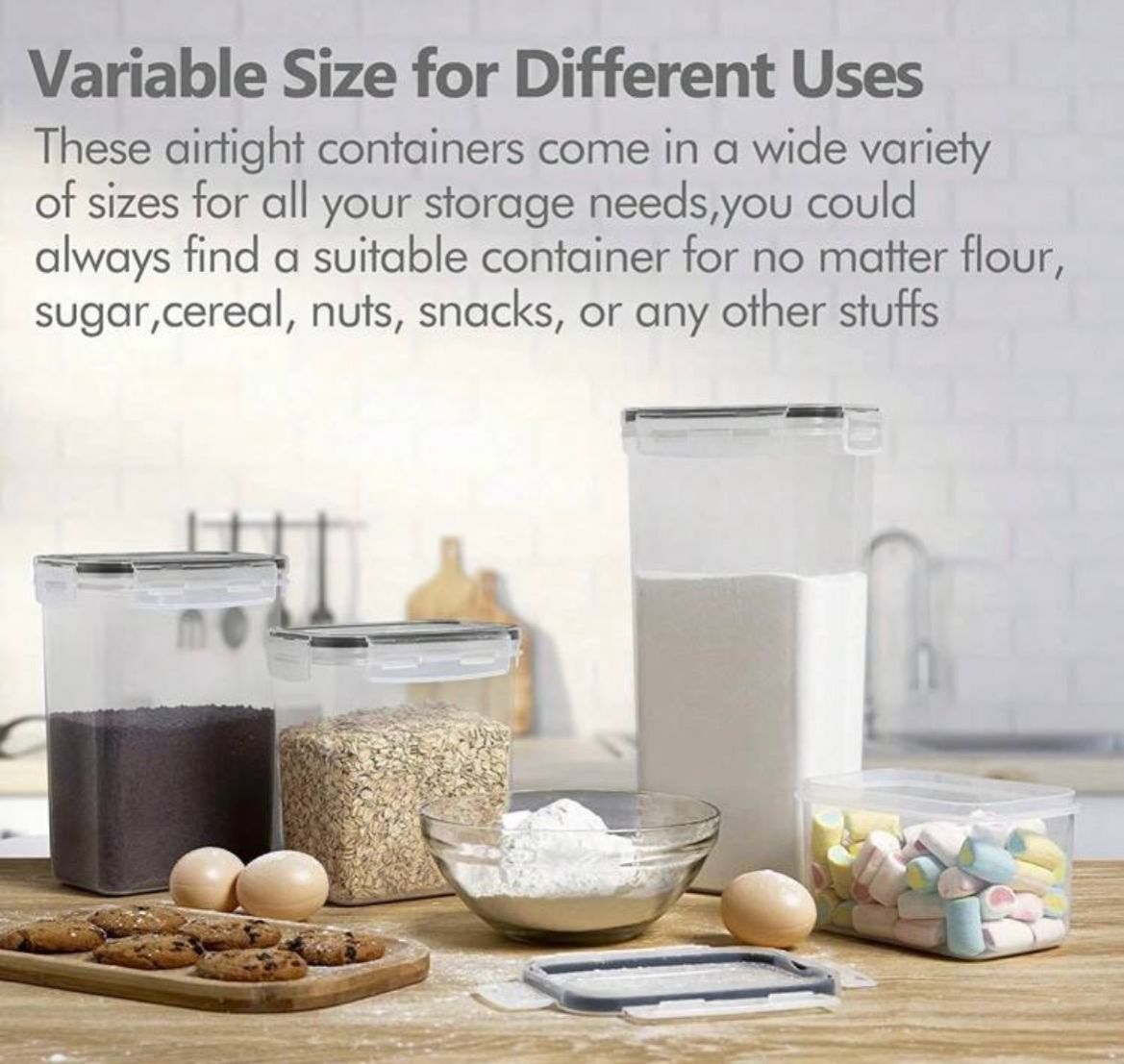 سيت حاوية 12 قطعة _ THELIFE حاوية تخزين طعام محكمة الإغلاق مع أغطية، حاويات تخزين للمطبخ، حاويات تخزين بلاستيكية للتنظيم والتخزين في المطبخ والمخزن، برطمانات طعام جاف للدقيق والسكر والحبوب. تشمل ملصقات وقلم تحديد، آمنة للغسل في غسالة الأطباق.