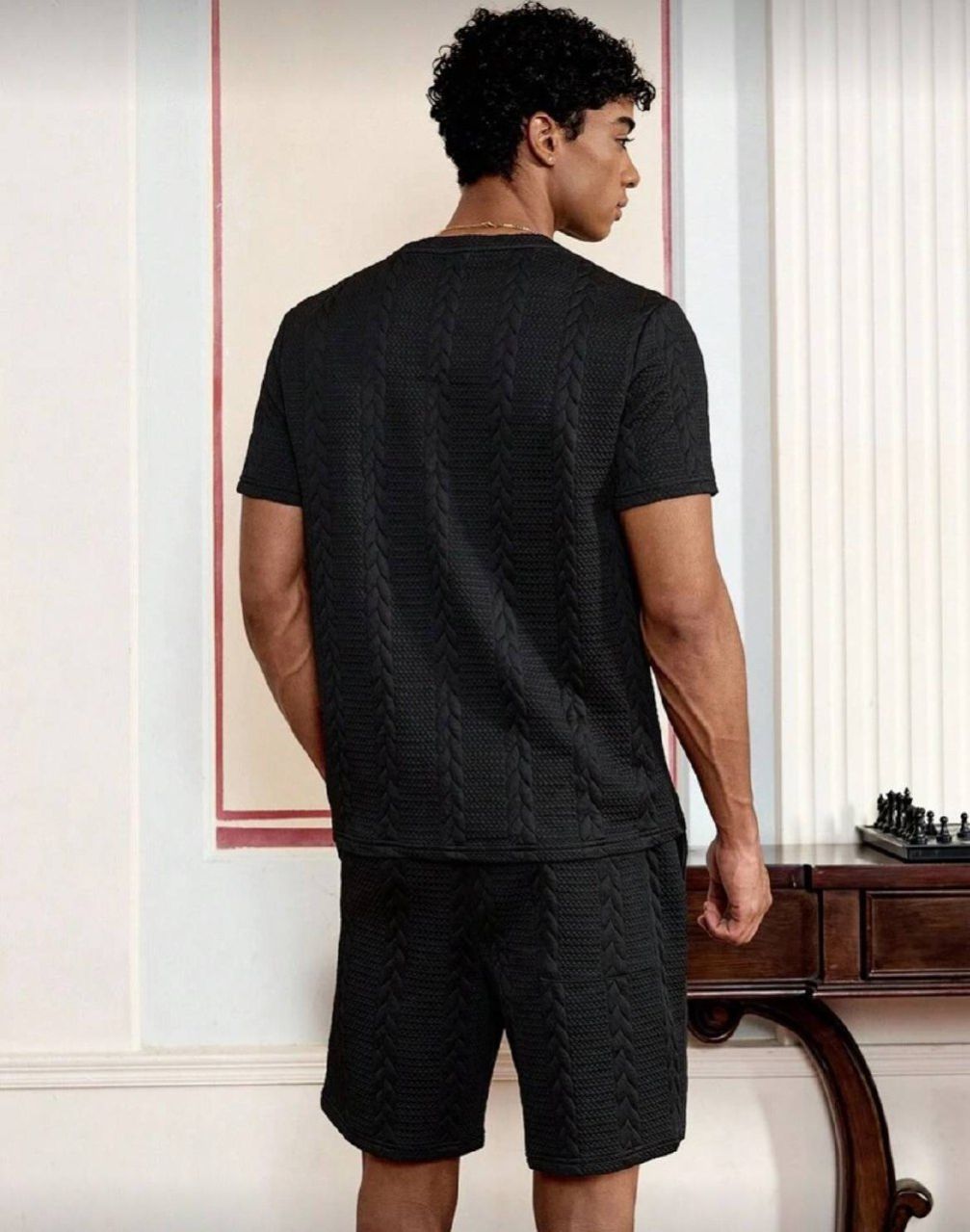 طقم تيشيرت قصير الأكمام بطبعة حرفية وشورت كاجوال للرجال، طراز الملابس الشارعية الصيفية