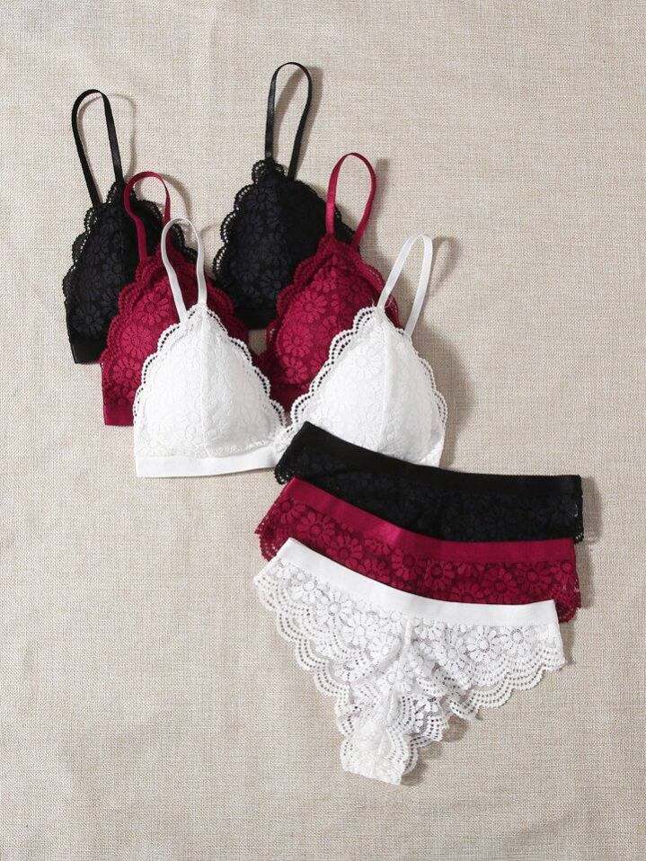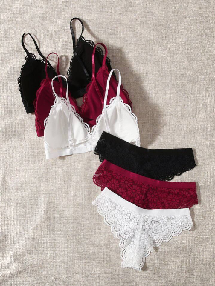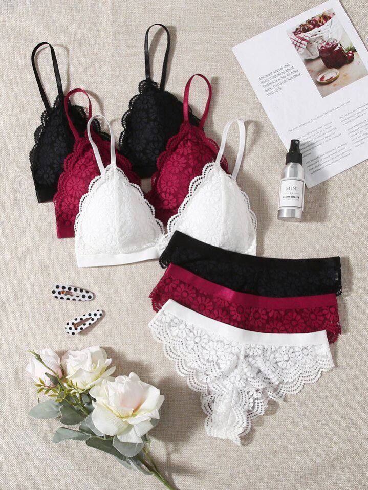 0 Review Of Product طقم حمالة صدر مع لباس داخلي رفيع قطاع الصاف رومانسي 3قطع