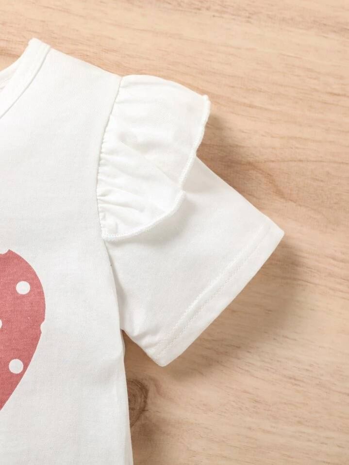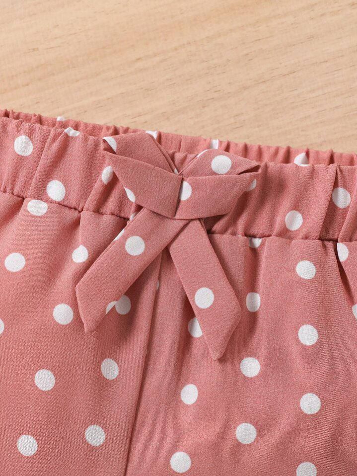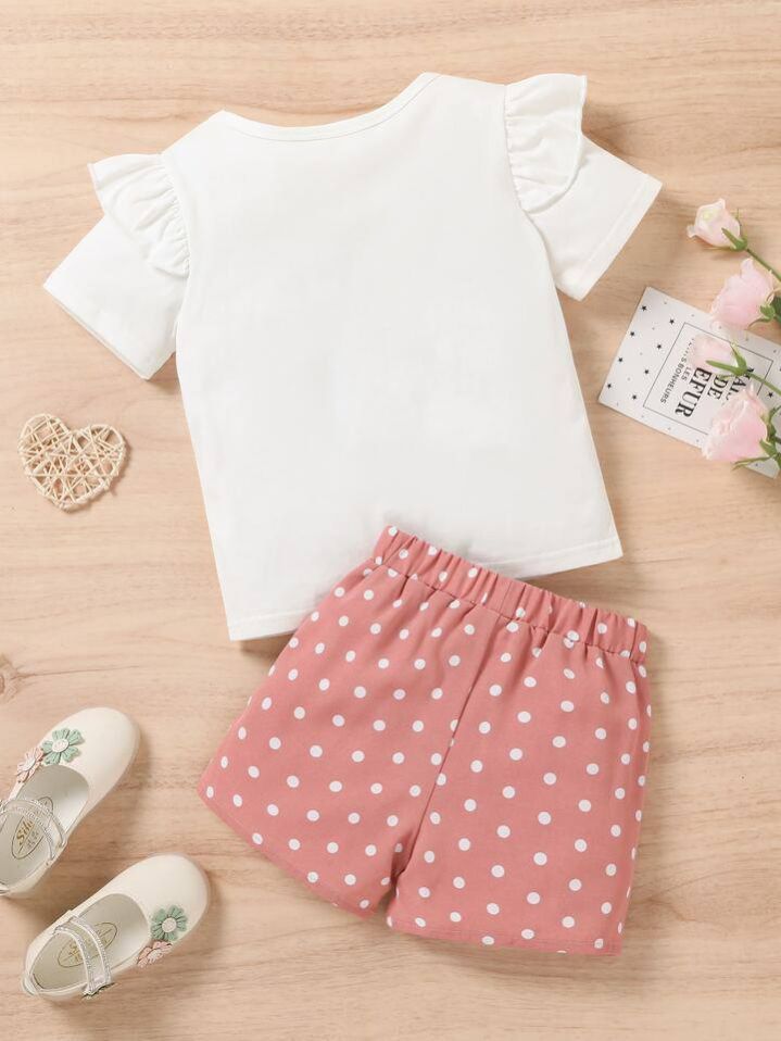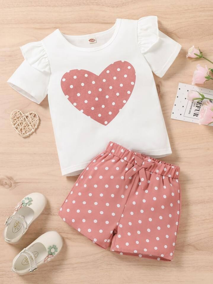 طقم شي إن من قطعتين للفتيات الصغيرات: بلوزة قصيرة الأكمام بطبعة قلوب، وشورت بوهيمي منقط بأكمام مكشكشة، الأكثر مبيعًا في الصيف