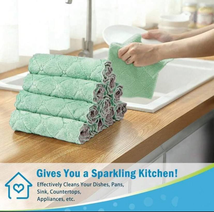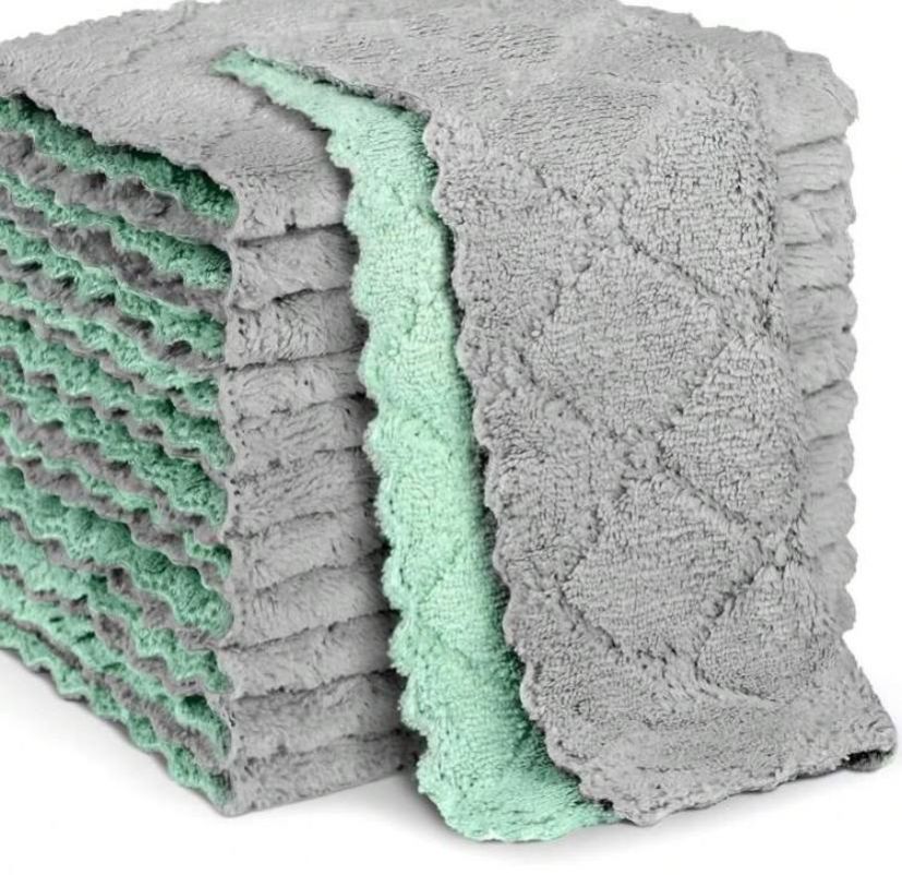 عبوة من 5 مناشف أطباق ماصة من الصوف المرجاني، مناشف أطباق قابلة لإعادة الاستخدام عديمة الرائحة، مناشف تنظيف من الألياف الدقيقة، مناشف أطباق سريعة الجفاف، 15 × 25 سم