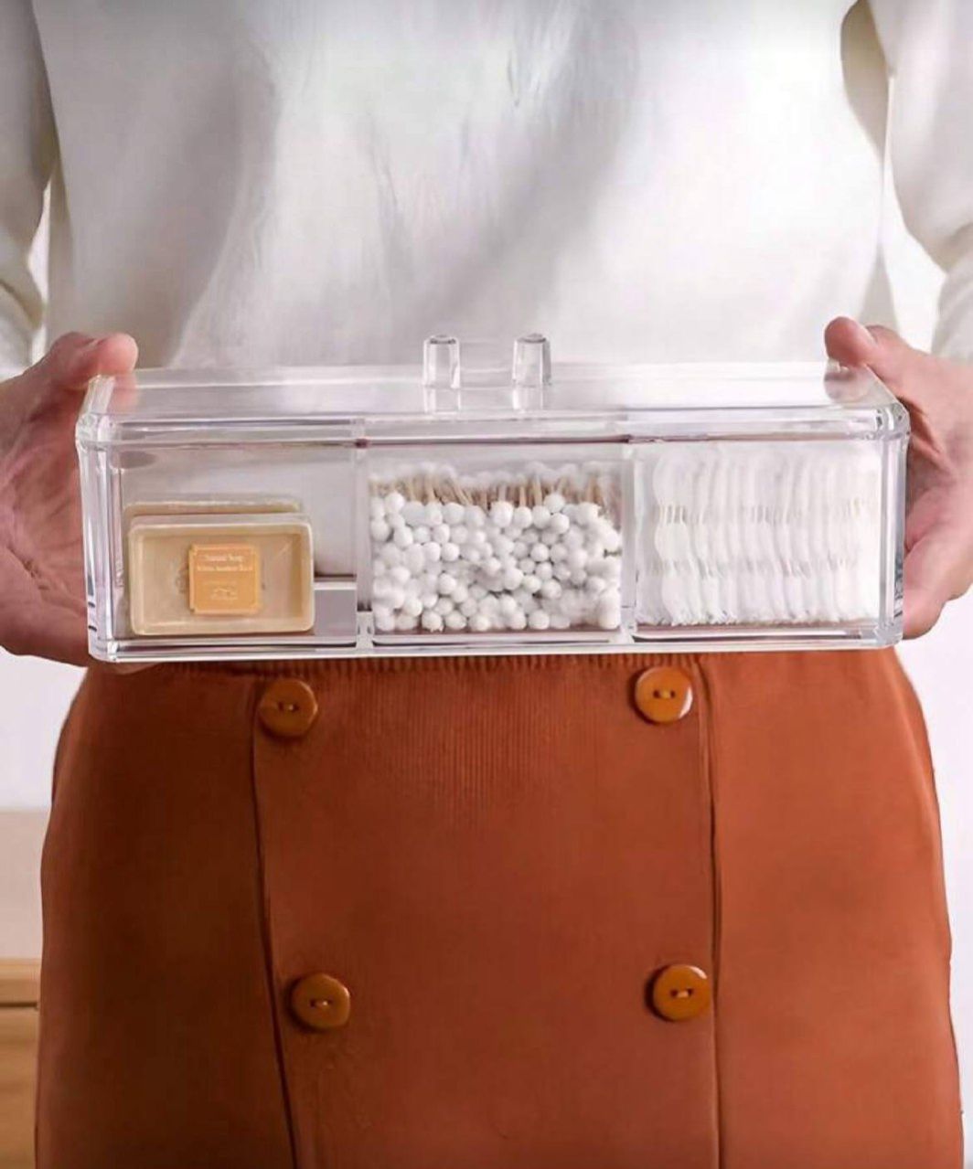 علبة تخزين مكياج بلاستيكية قطعة واحدة ، صندوق تخزين وسادات المكياج على المكتب المنزلي ، أعواد القطن ، فوط إزالة المكياج ، شفافة ، خالية من الغبار ، عالية الجودة ، صندوق تخزين وترتيب ، صندوق تخزين مكياج أنيق وشفاف لترتيب ألواح المكياج والإكسسوارات والمستحضرات والمواد الجمالية ، منظم مكياج لطاولة التزيين والحمام ، لحفلات العطلات والشاطئ والغرفة النوم ، سعة كبيرة