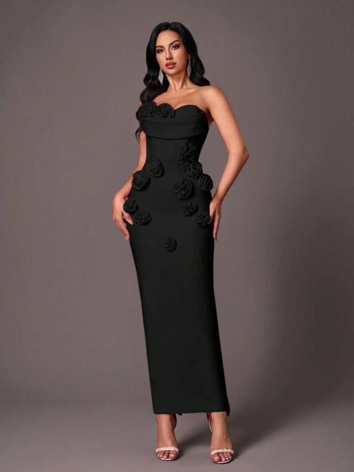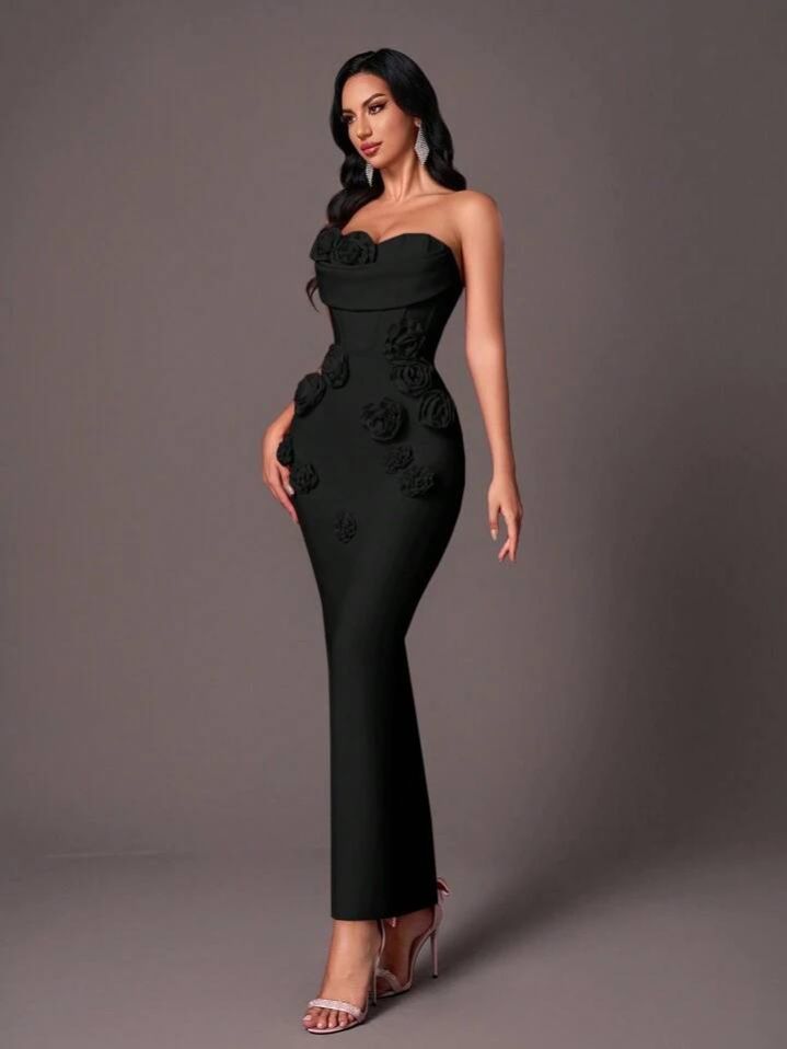 فستان حورية البحر الرسمي الأنيق بدون حمالات من Glamrae، بتصميم أنيق بدون أكمام مع تطريز زهور ثلاثي الأبعاد