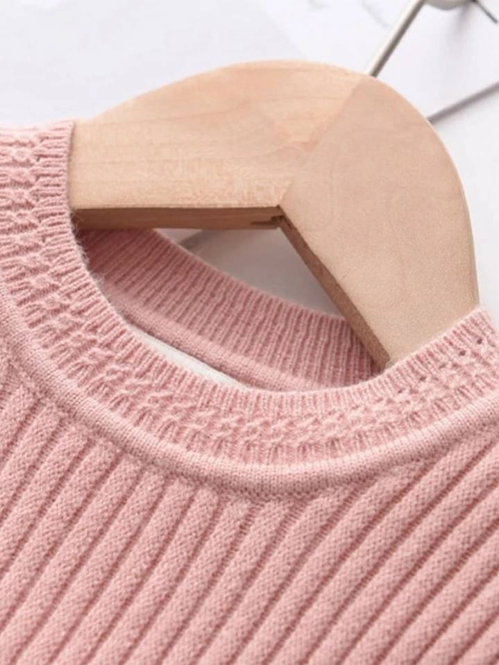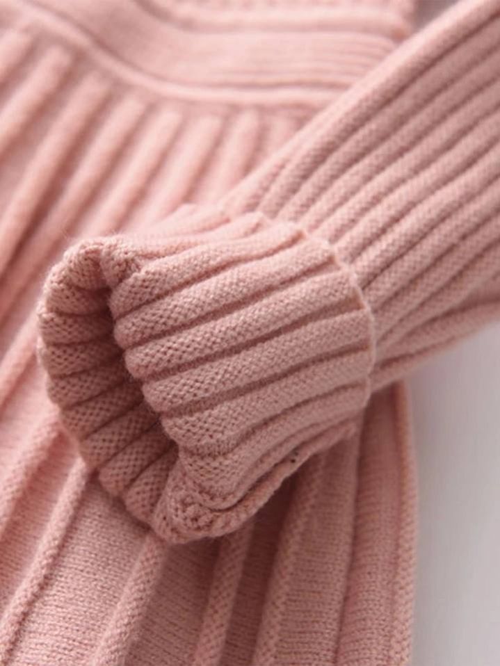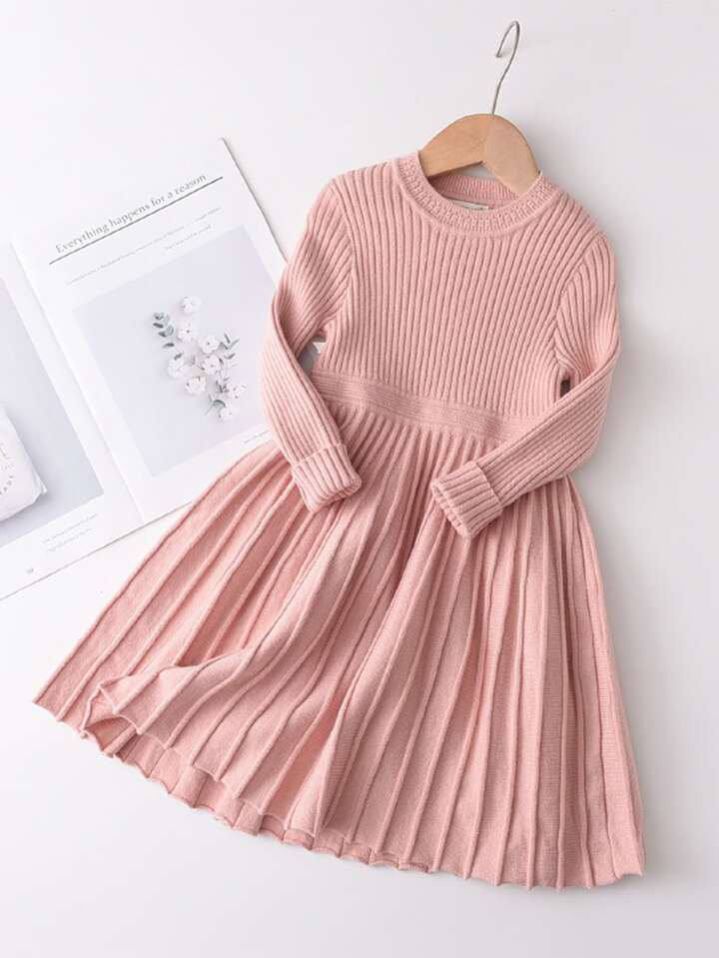 فستان محبوك كاجوال بسيط بأكمام طويلة وثنيات مناسب لفصل الخريف والشتاء لفتاة صغيرة