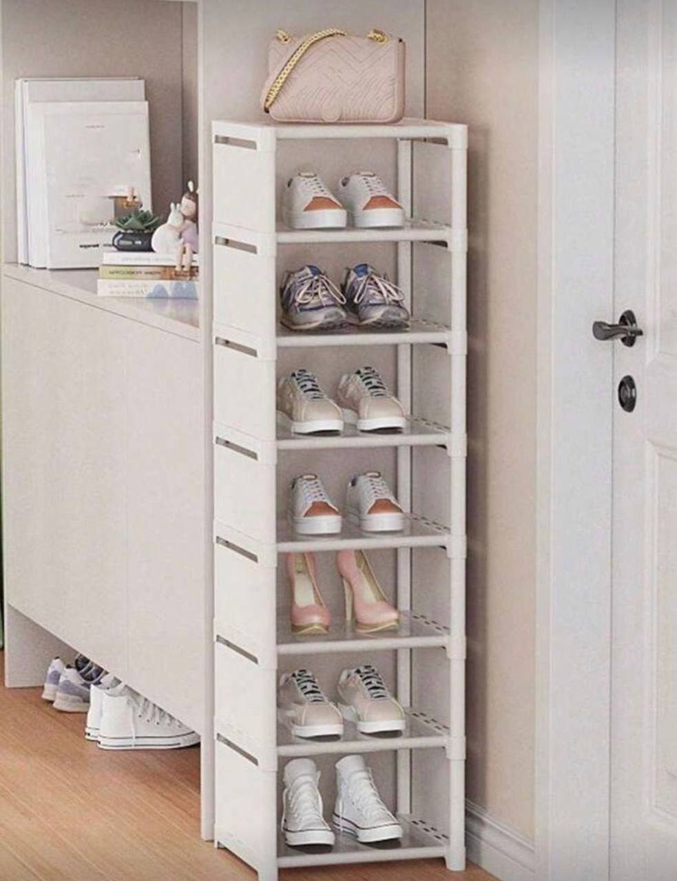 قطعة واحدة من رف الأحذية ذو 7 طبقات، خزانة تخزين أحذية بسيطة، منظم مدخل المنزل، توفير المساحة للشقق الصغيرة والمدارس الداخلية