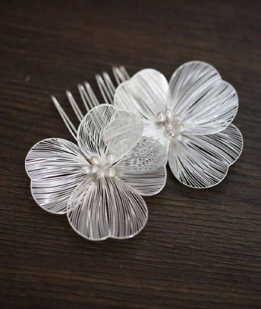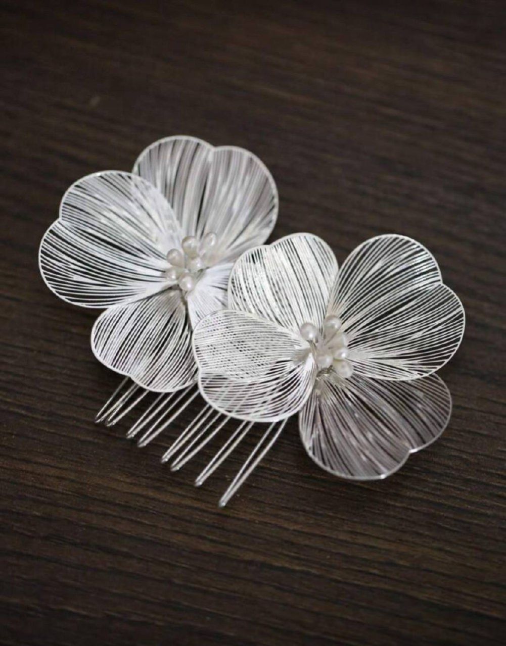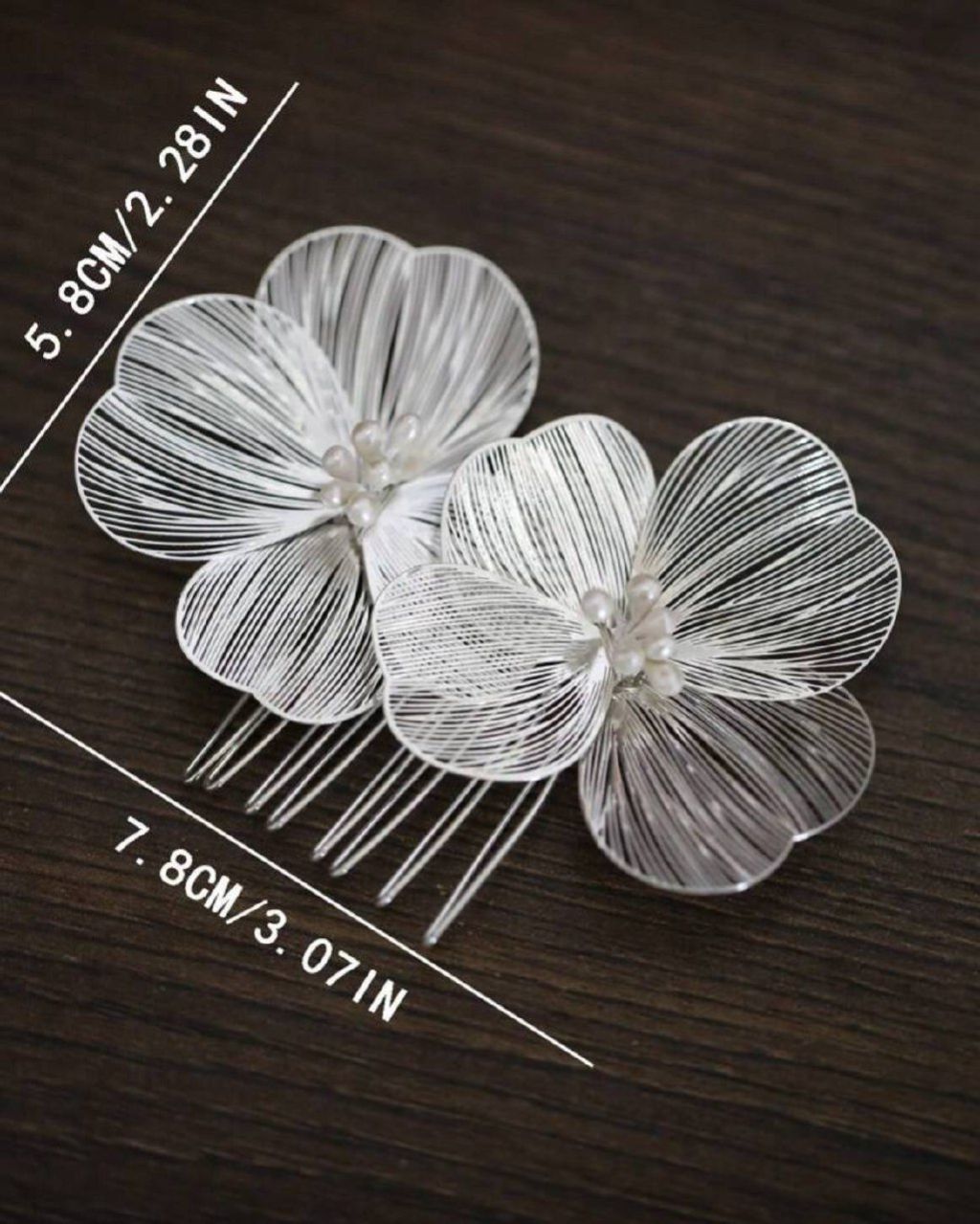 قطعة واحدة من مشط الشعر الحرفية المزين بفيونكة فضية، مناسب للحفلات الزفاف