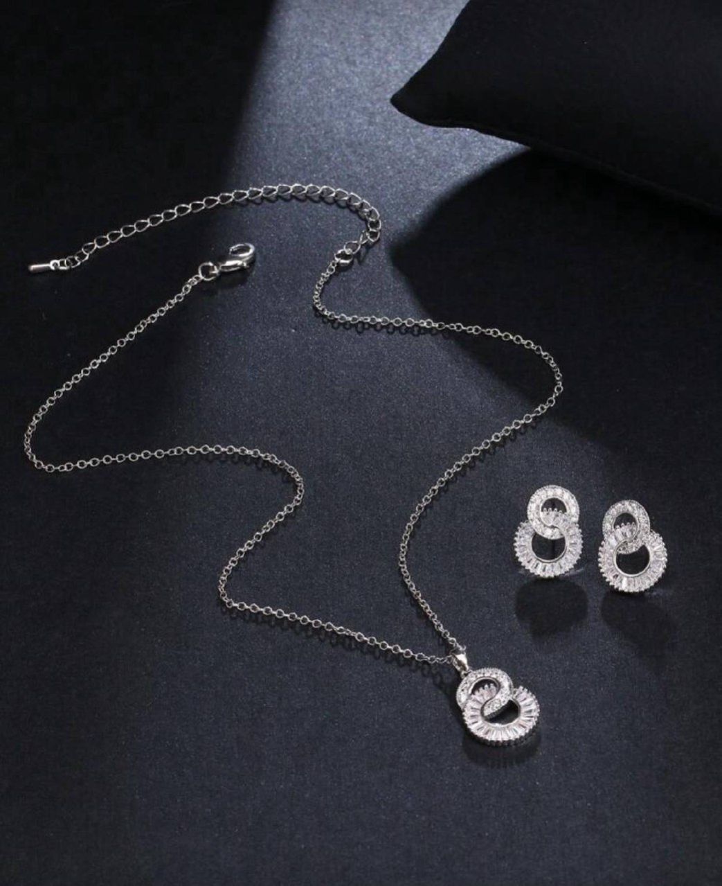 0 Review Of Product قطعتان من طقم مجوهرات الزفاف الفاخر المصنوع من اللؤلؤ الاصطناعي للنساء، أقراط من الزركونيا المكعبة وقلادة، إكسسوارات الزفاف