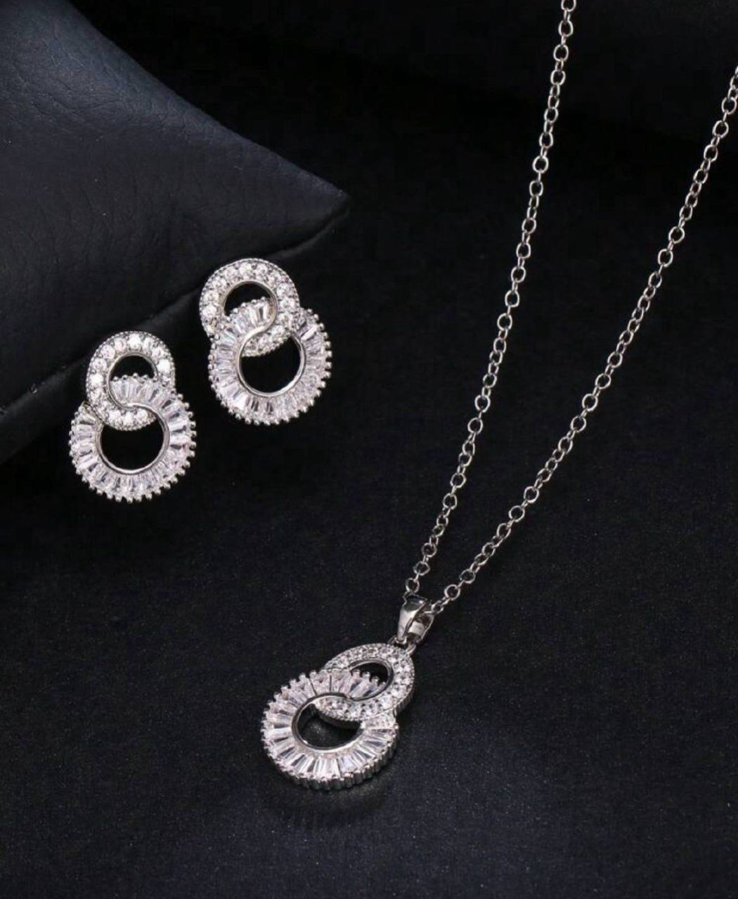 قطعتان من طقم مجوهرات الزفاف الفاخر المصنوع من اللؤلؤ الاصطناعي للنساء، أقراط من الزركونيا المكعبة وقلادة، إكسسوارات الزفاف
