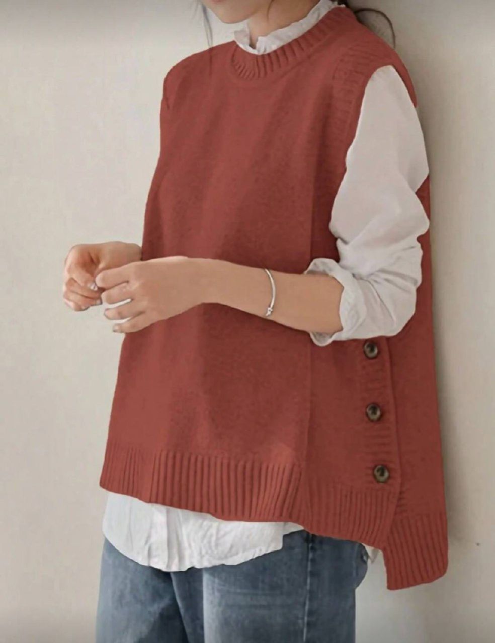 0 Review Of Product كنزة صوفية صدرية كنزة ناعمة وخالية من الأكمام، بلون أحادي مصنوعة من الأنسجة المحبوكة للربيع والخريف، ملابس نسائية كاجوال مريحة للارتداء اليومي