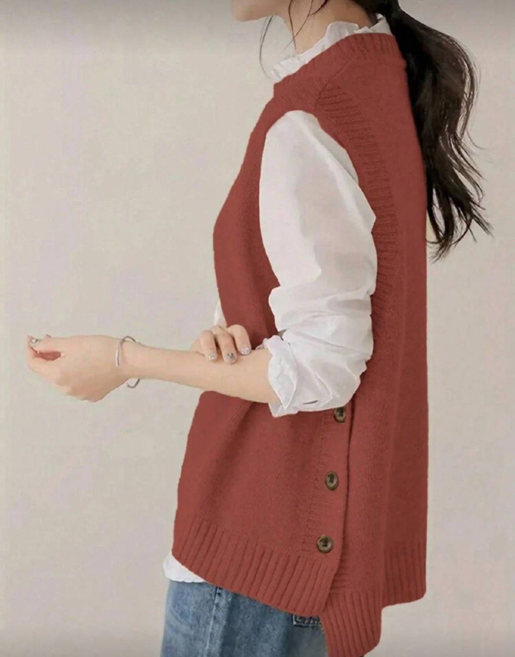 كنزة صوفية صدرية كنزة ناعمة وخالية من الأكمام، بلون أحادي مصنوعة من الأنسجة المحبوكة للربيع والخريف، ملابس نسائية كاجوال مريحة للارتداء اليومي