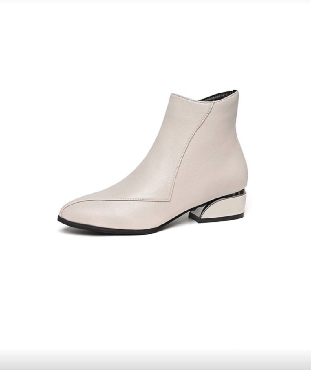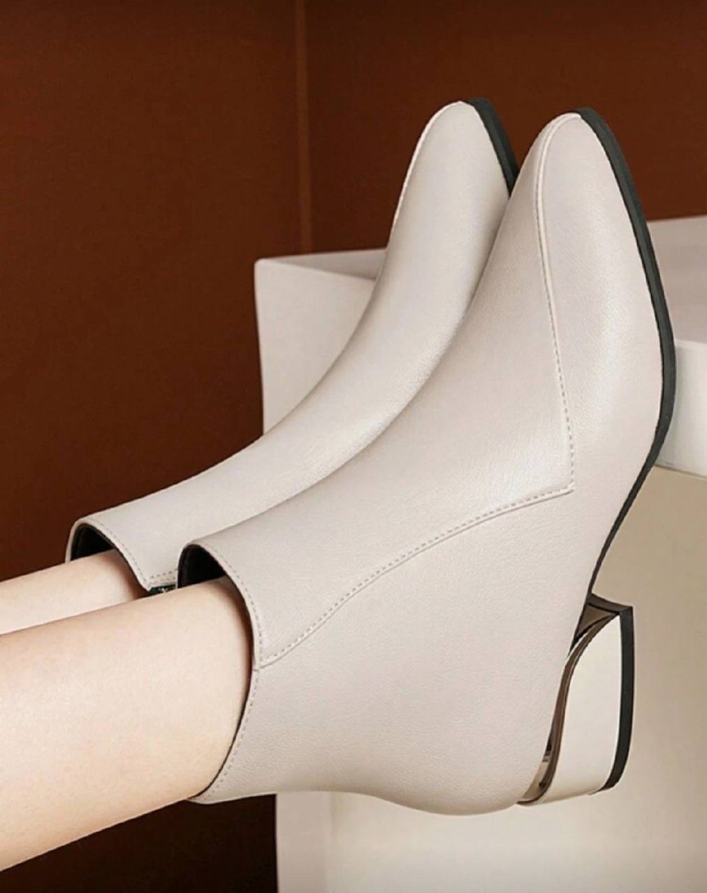 مثالي مع الكارديجان، بوت كاحل نسائية جديدة موسم خريف وشتاء 2024 ذات إصبع قدم مدبب وكعب سميك منخفض، متعددة الاستخدامات وأنيقة من الجلد الناعم ذات نعل ناعم