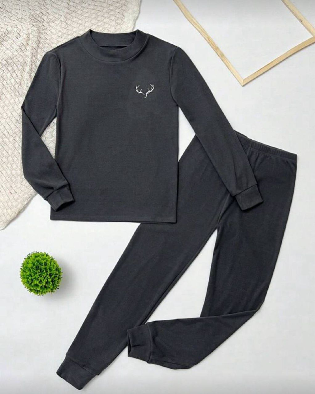 مجموعة بيجامة مكونة من قميص كم طويل بياقة طاقم مطرز وبنطال ضيق للمراهقين الذكور، مجموعة ملابس أساسية متعددة الاستخدامات مناسبة للمنزل والتنقل والمدرسة والأنشطة اليومية والعطلات والخارج والحفلات، مناسبة للخريف والشتاء