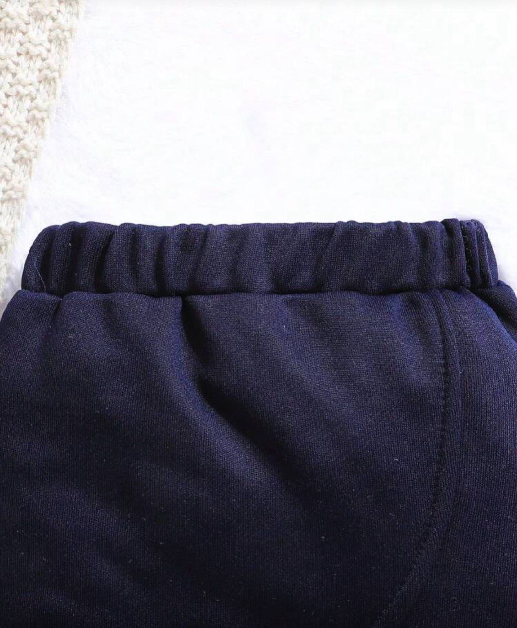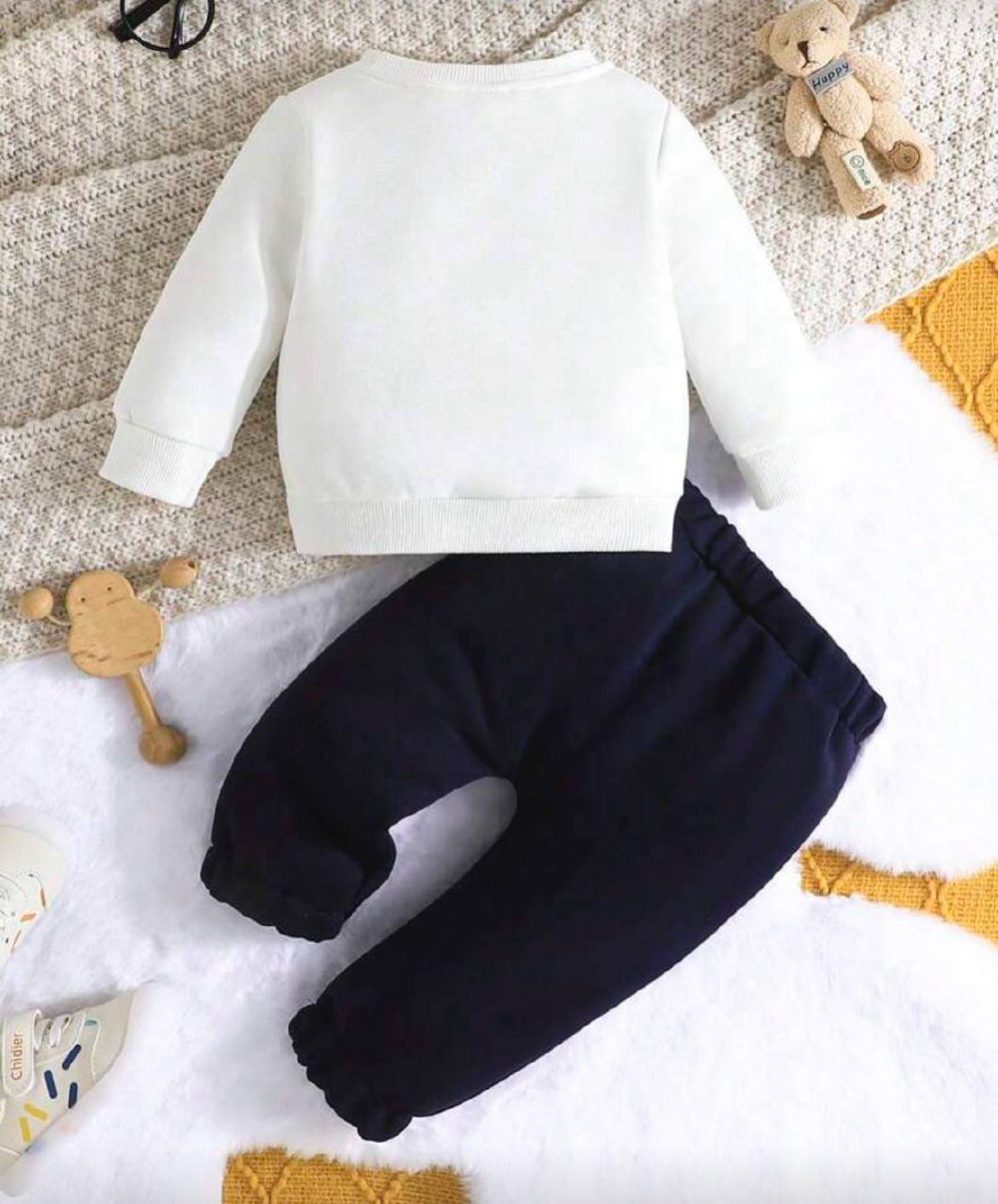 مجموعة ملابس علوية كم طويل وبنطال طويل لون أساسي بتصميم الدب الكرتوني للأولاد الرضع، خريف/شتاء، قطعتان