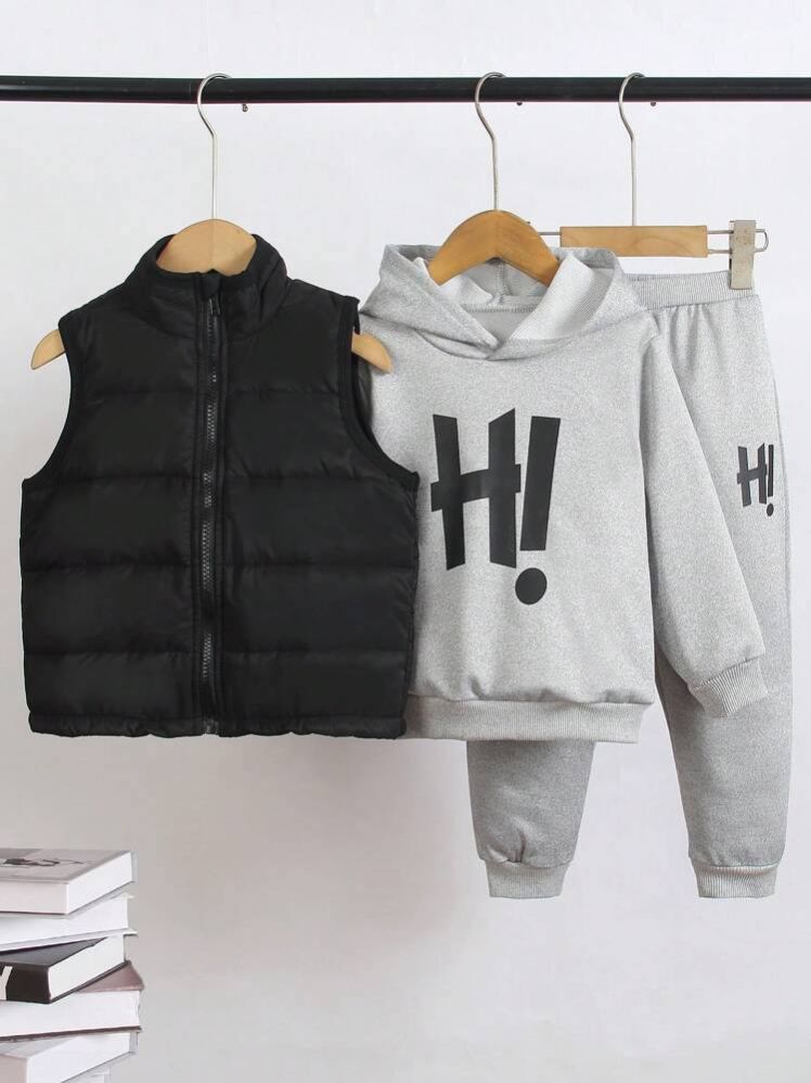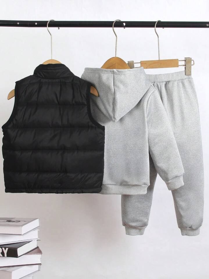 مجموعة من 3 قطع من سترة رياضية دافئة للأولاد الصغار من SHEIN، سترة بأكمام طويلة وبنطلون، مناسبة للمدرسة والرياضة والأنشطة الخارجية في الخريف/الشتاء