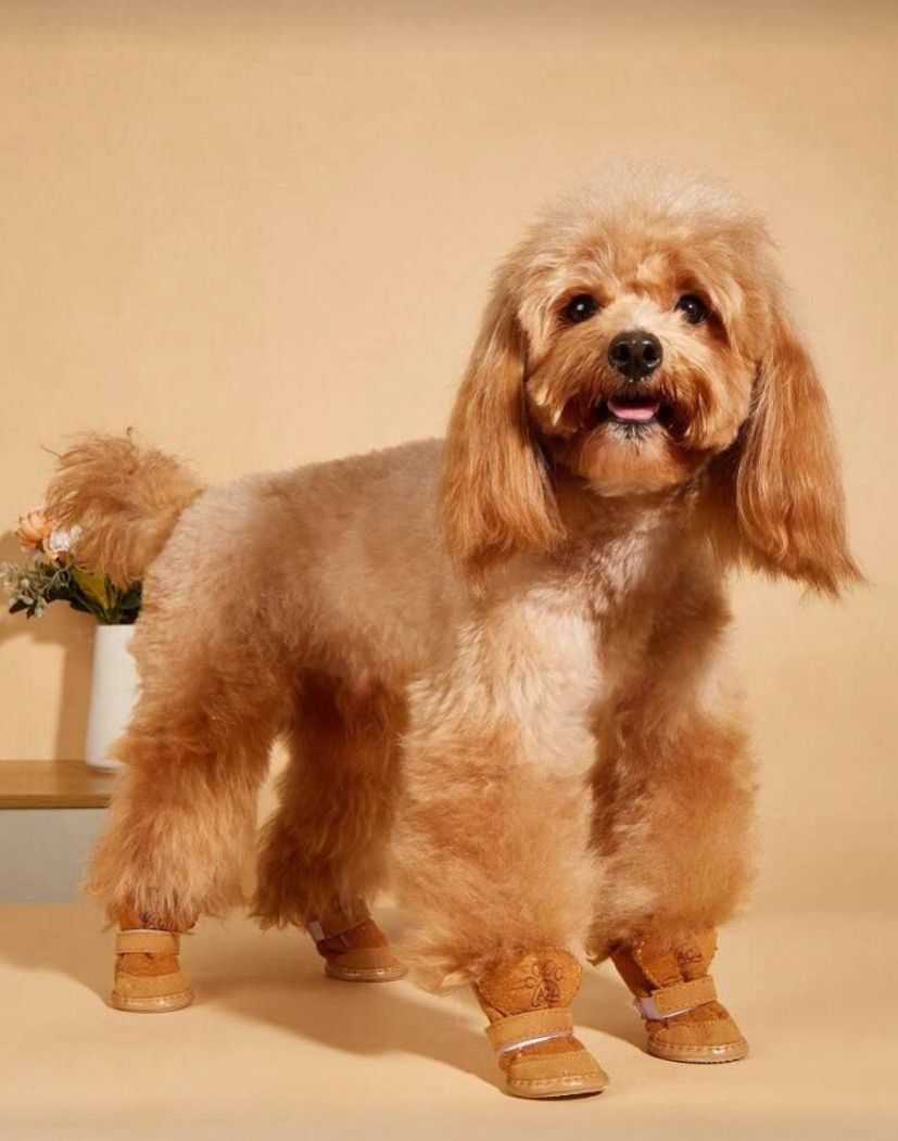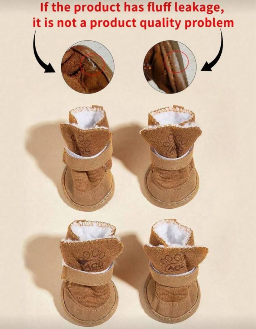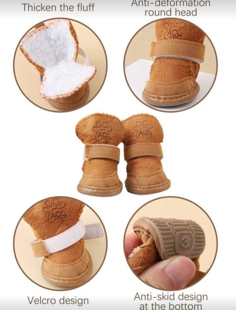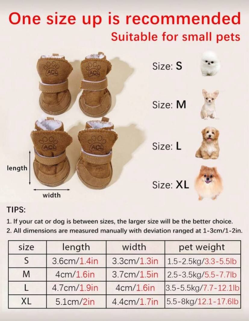 مجموعة من 4 قطع من الأحذية الجلدية الفاخرة للحيوانات الأليفة الصغيرة، أحذية ثلجية دافئة من الصوف للحيوانات الأليفة الصغيرة، أحذية مزخرفة للحيوانات الأليفة الصغيرة، مناسبة للاستخدام الداخلي والخارجي للحيوانات الأليفة الصغيرة والمتوسطة الحجم