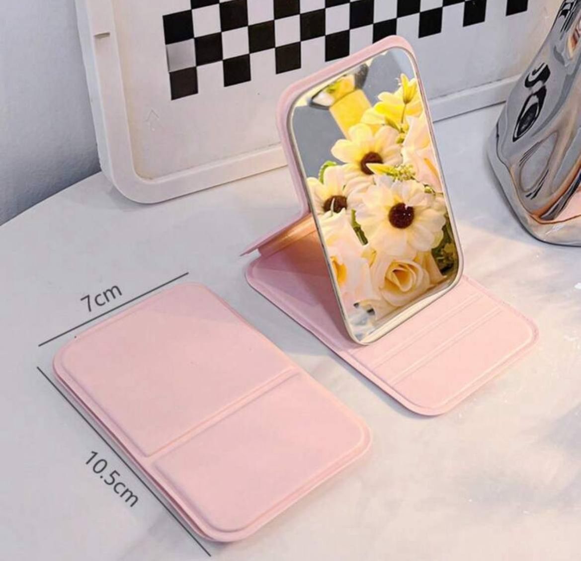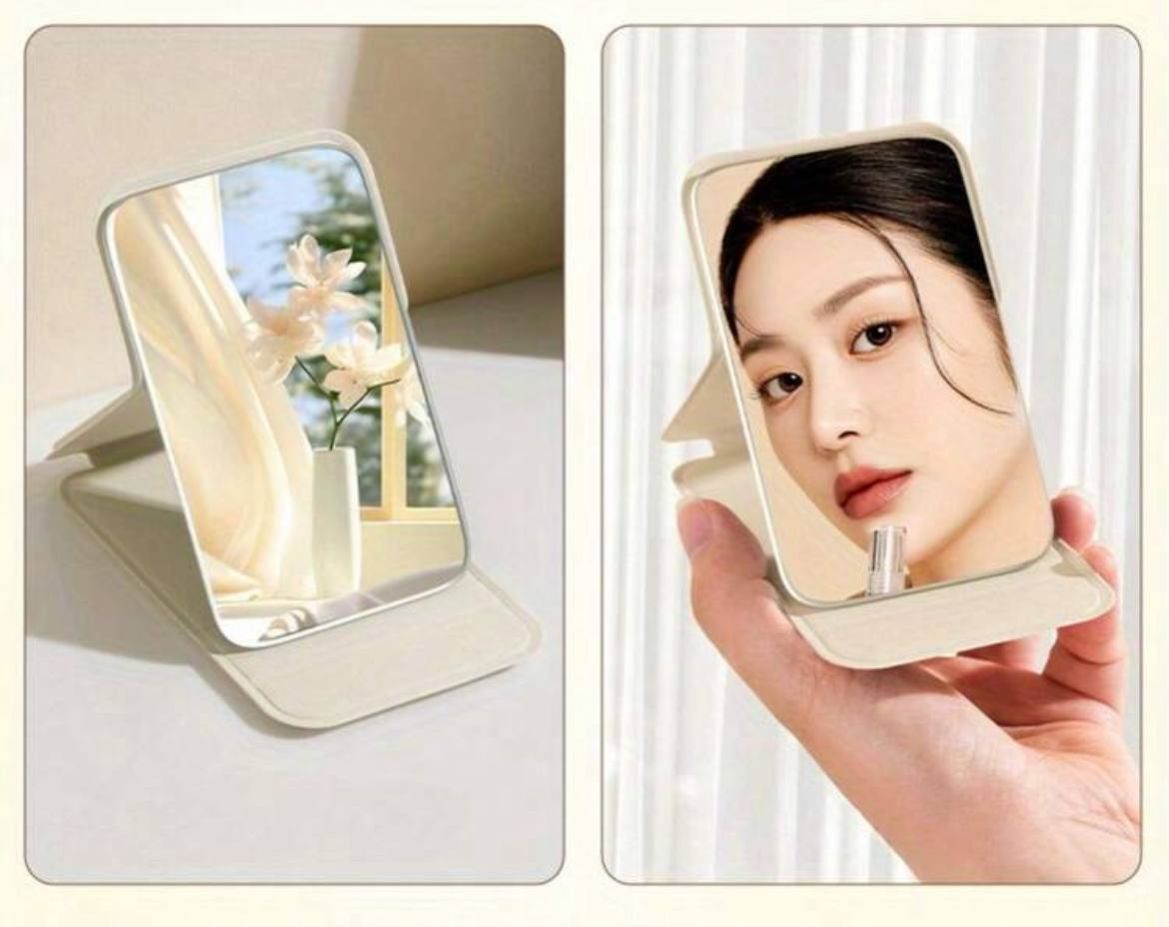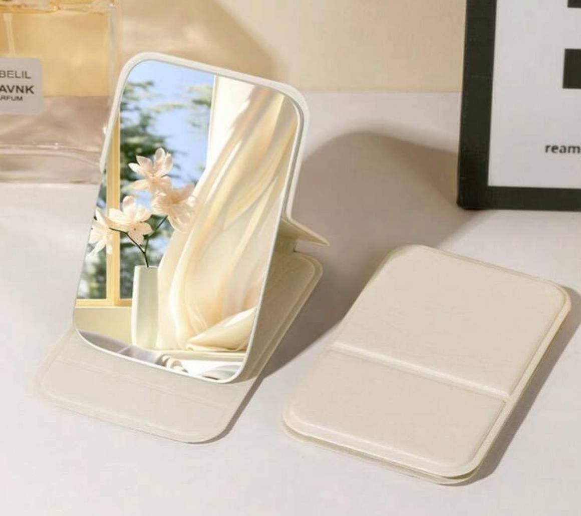 مرآة مكياج قابلة للطي، مرآة مكياج محمولة باليد، بسيطة وقابلة للطي للمكتب في السكن الطلابي، مرآة تجميل