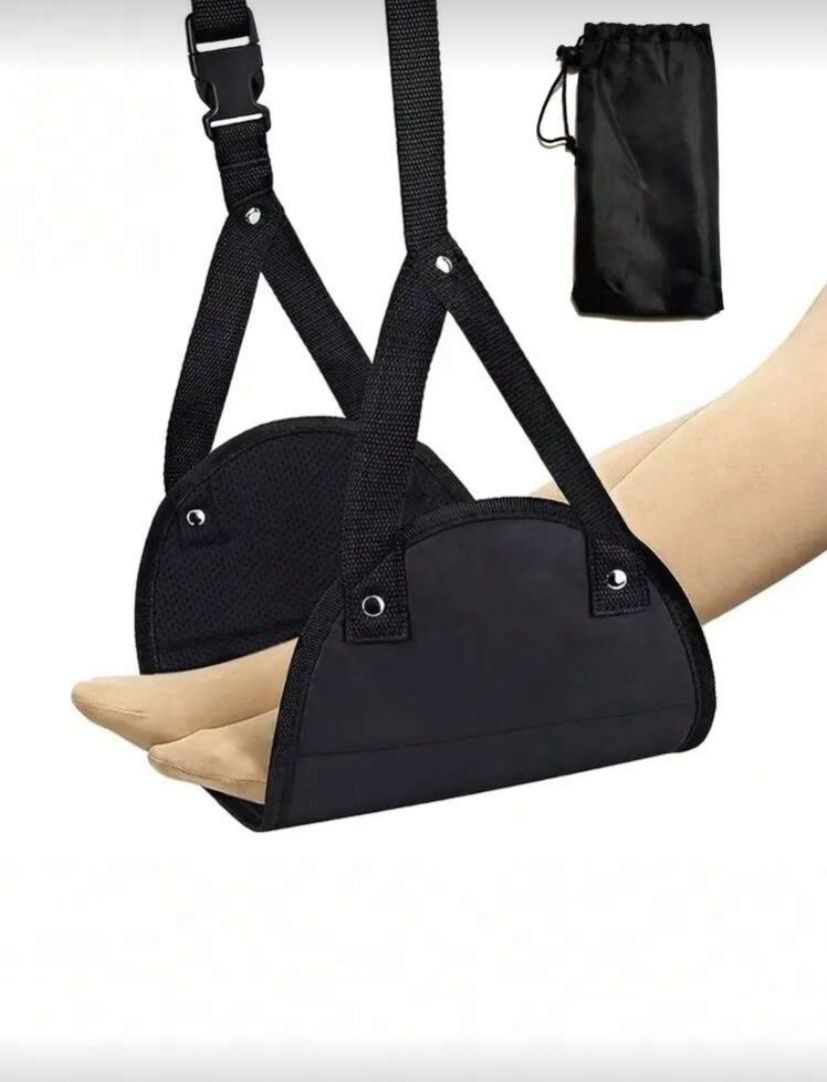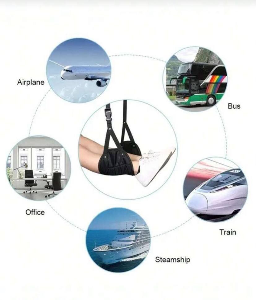 مسند قدم أسود للطائرات، قابل للتعديل بأشرطة، خفيف الوزن، مناسب للسفر، والمكتب، والأرجوحة، ومسند الساق للطائرات، والمكاتب، والأنشطة الخارجية، والسيارات. مستلزمات السفر، واللوازم المدرسية، ومستلزمات العطلات، ومعدات التخييم، ومستلزمات العطلات الصيفية.