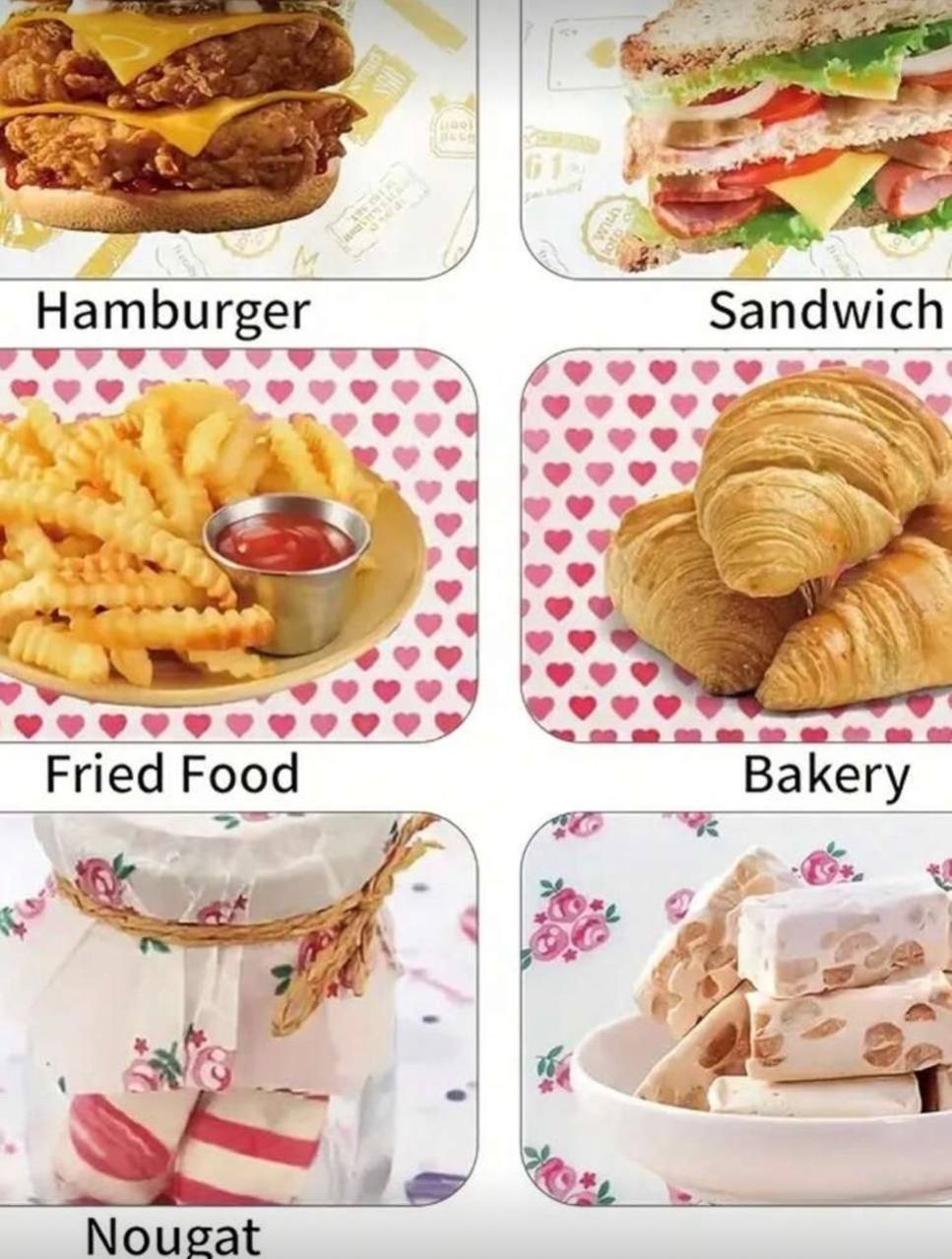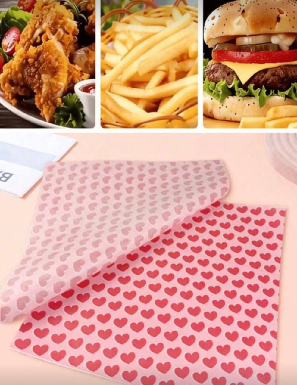 1 طقم (45 قطعة) ورق مقاوم للزيت، ورق خبز، مستخدم لتغليف السندويشات والبرغر، أدوات الخبز، ورق تغليف بشكل قلب مزين بنقوش الورود لعيد الحب، أساسيات المطبخ، مناسب للتجمعات والمناسبات والاستخدام الخارجي، ورق تغليف السندويشات، بتصميم عشوائي