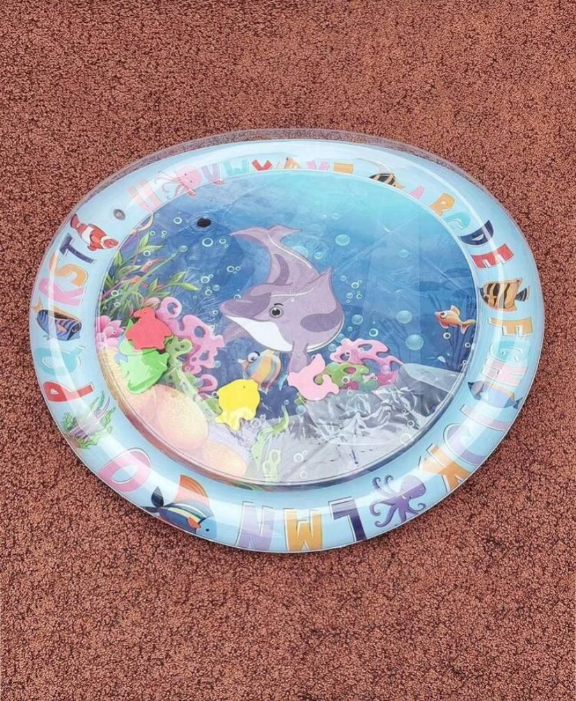 0 Review Of Product 1 × 65 سم سجادة لعب مائية للأطفال بنمط الدلافين والفقمات، سجادة لعب دائرية قابلة للنفخ مصنوعة من بلاستيك بي في سي، وسادة، هدية للأطفال