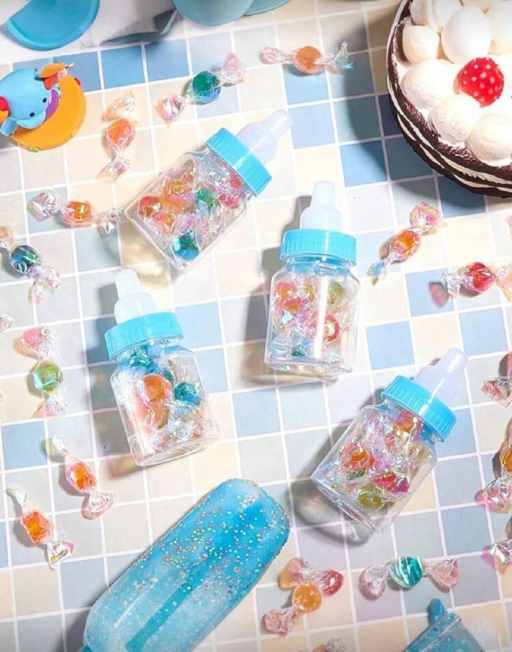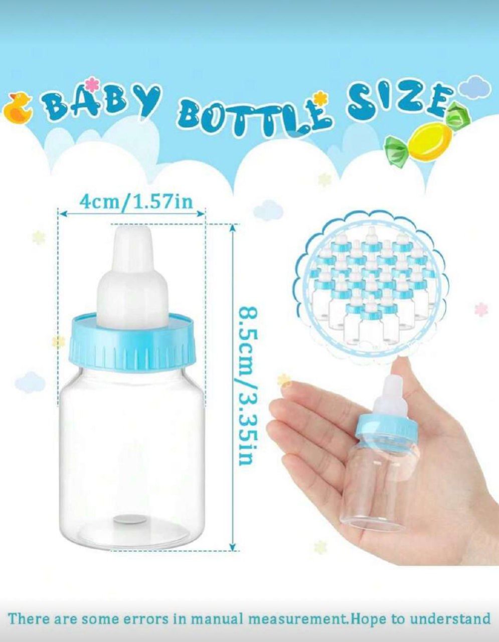 10 قطع- زجاجة بلاستيكية صغيرة بحجم 3.35 بوصة، مناسبة كهدية لحفلة استحمام الطفل، لحفلة الكشف عن جنس الطفل، ديكورات حفلة استحمام الطفل، صناديق حلوى تغذية صغيرة، ديكورات حفلة استحمام الطفل للأولاد (أزرق)