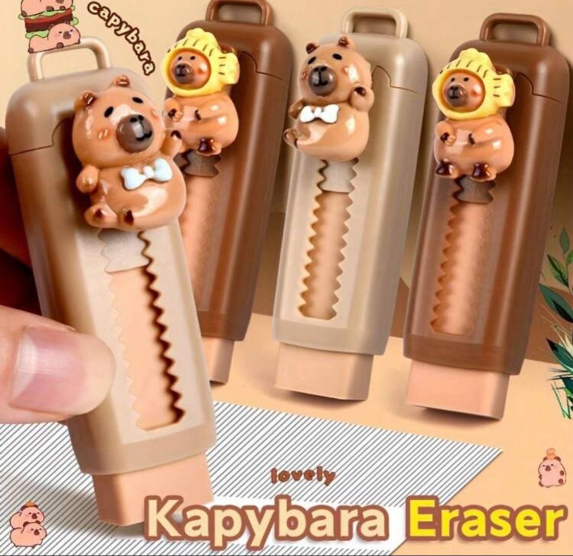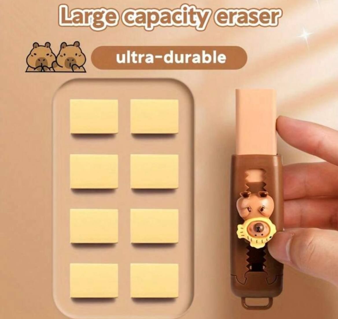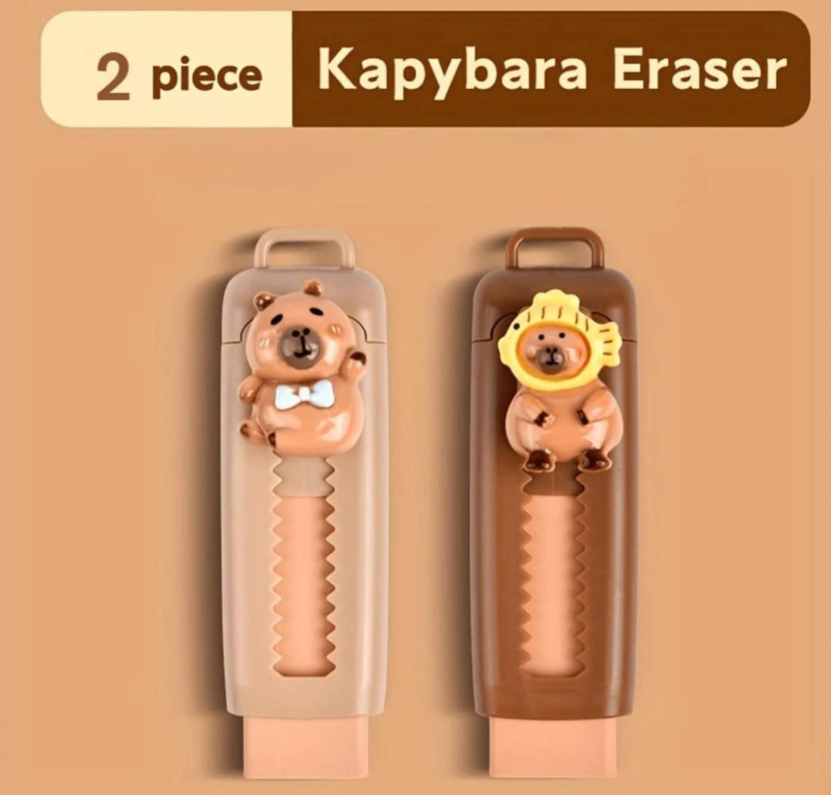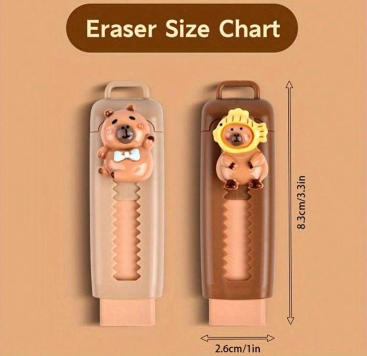 0 Review Of Product 2 قطعة من أقلام المطاطات القابلة للسحب على شكل كابيبارا - كبيرة الحجم، مناسبة للاستخدام في المدرسة والمكتب، مثالية للفن والرسم في بداية العام الدراسي