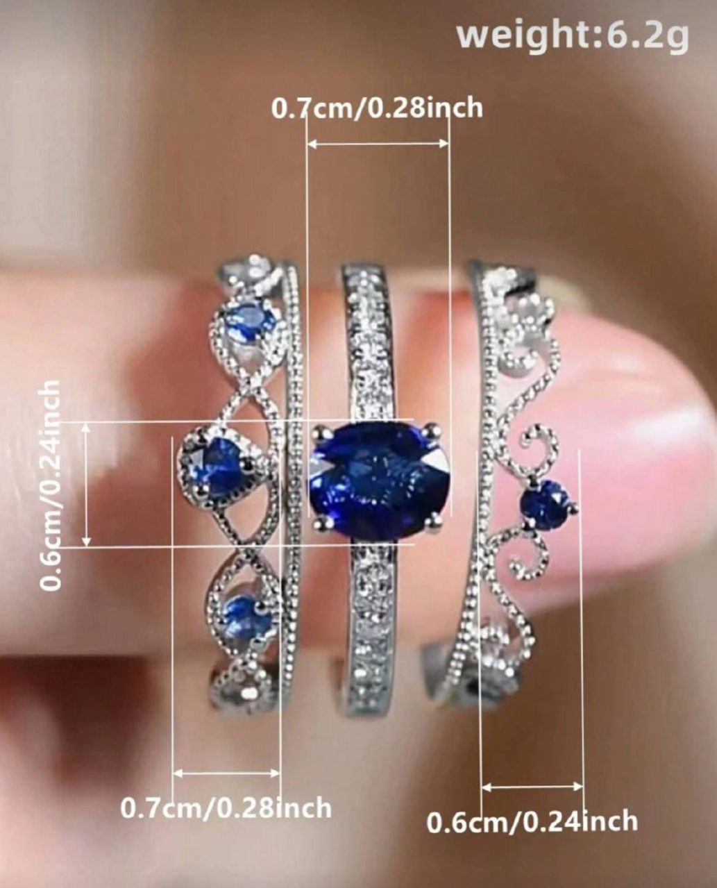 0 Review Of Product 3 قطع / مجموعة خواتم أزرق ألماس مكعب موضة للنساء لحفلات الزفاف والخطوبة والسنوية وحفلات الأعياد والهدايا في عيد الحب والأم وعيد الأم