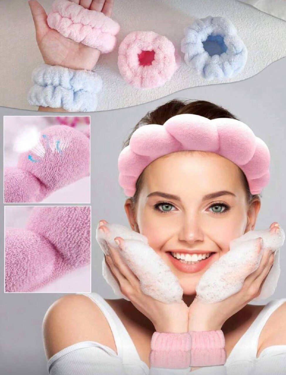 3 قطع من طقم شريط الرأس المضفر وشريط المعصم، إكسسوارات شعر لغسل الوجه ووضع المكياج. يتضمن طقم شريط الرأس المضفر 3 قطع: 1 شريط رأس مضفر و2 شريط معصم. مناسب لغسل الوجه، تنظيف البشرة، وضع المكياج، إزالة المكياج، والسفر. مناسب لجميع أنواع البشرة.