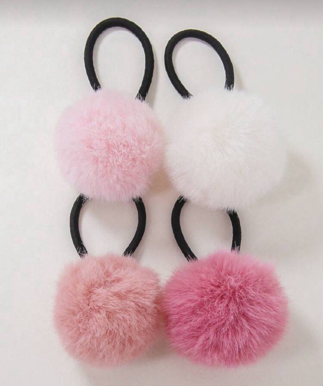 4 قطعة / مجموعة من الكرات الفلفية الكبيرة ذات تدرج اللون للفتيات، ربطات شعر مطاطية ذات مرونة عالية ، احتفظي بذيل الحصان ، اكسسوارات شعر