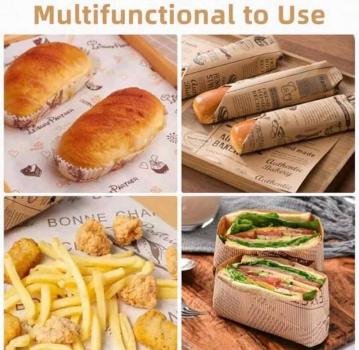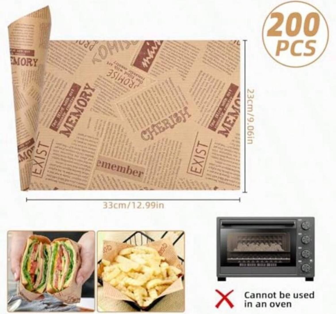 0 Review Of Product 50ورقة من ورق الجبن، ورق برجر زيتي مقاوم للماء 33 * 23 سم للسلة، ورق لف للاستعمال مرة واحدة للبرجر والساندويتشات والبرجر والزبدة والجبن وسلة الطعام