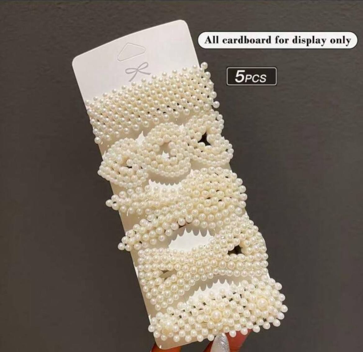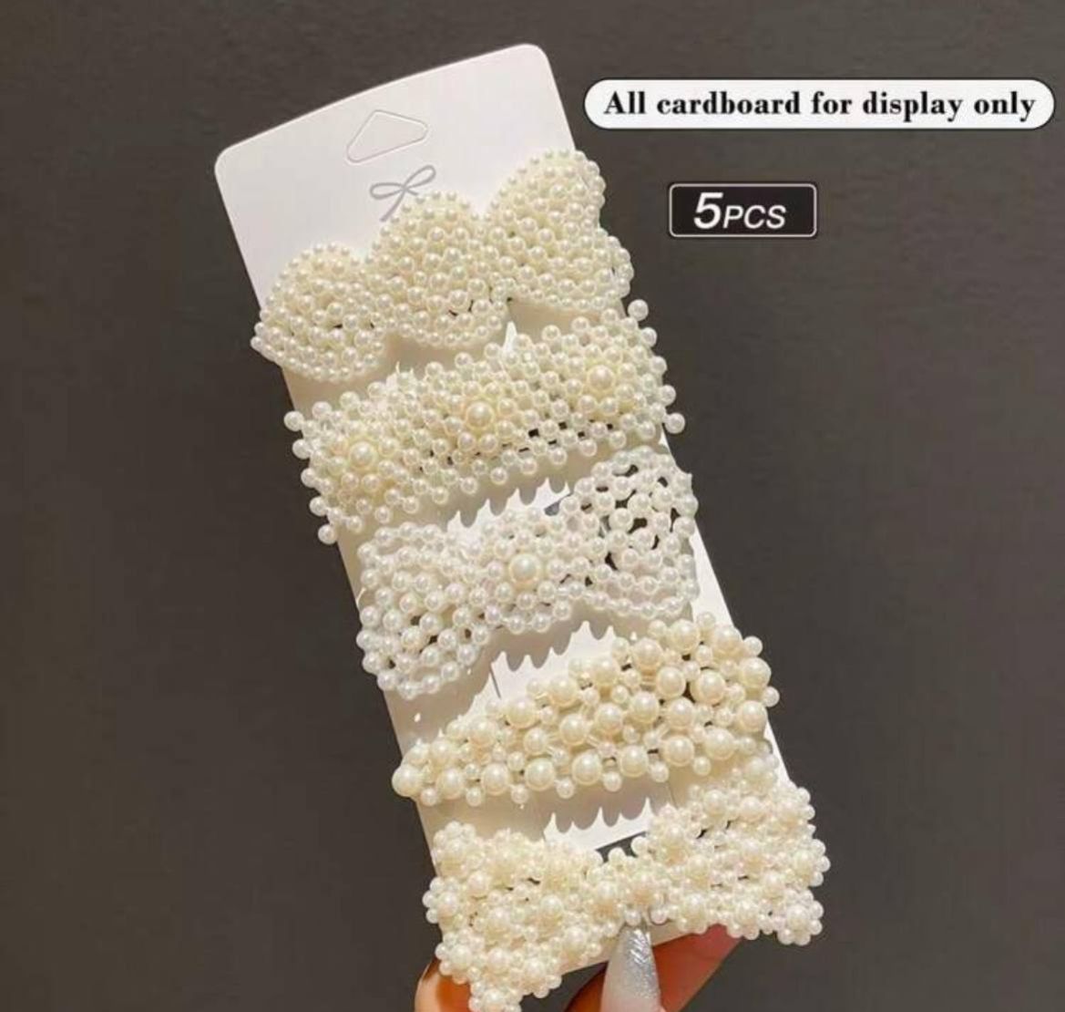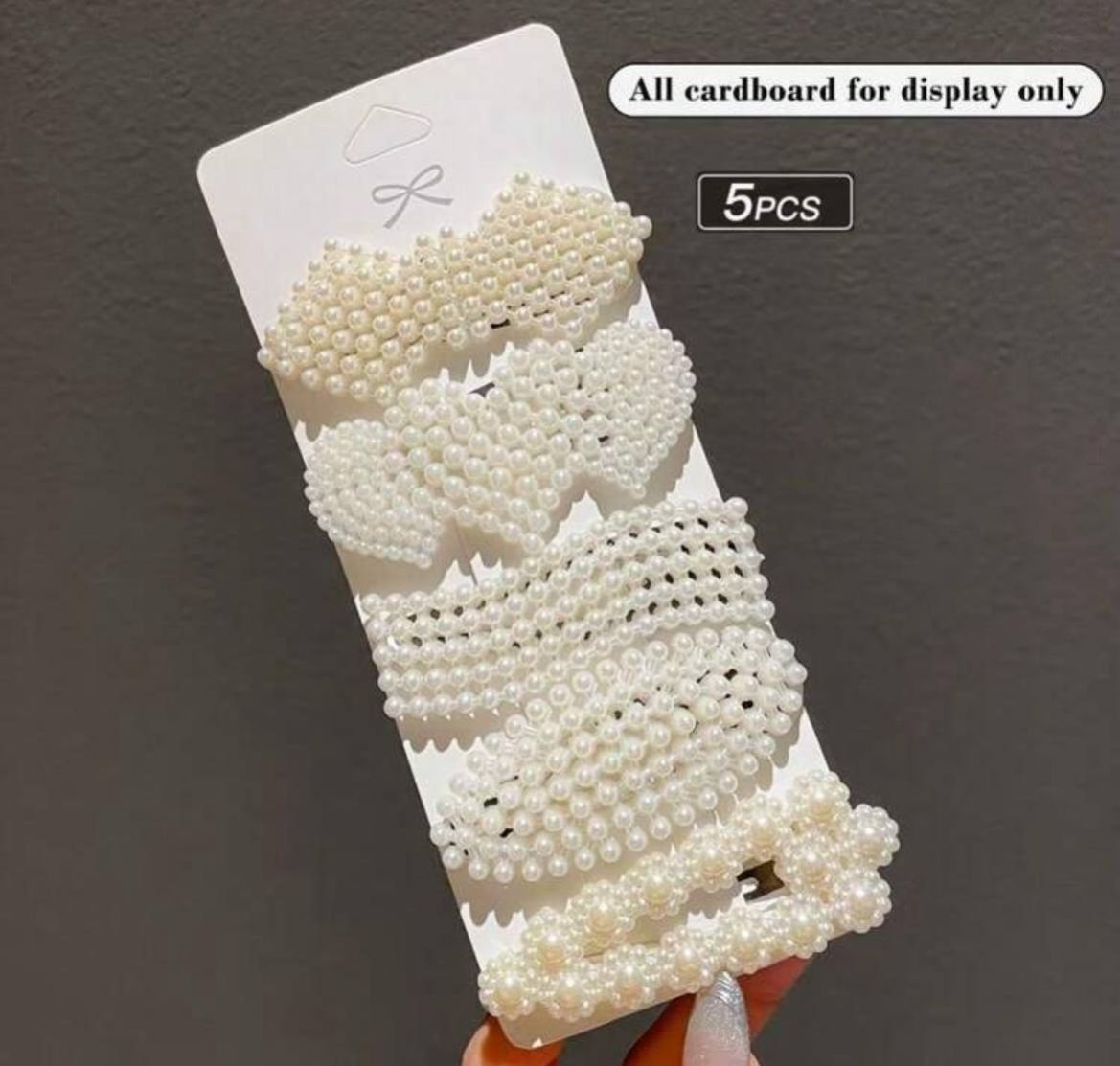5/10 قطعة مجموعة مشابك شعر مزيفة من اللؤلؤ الأنيقة، مشابك شعر بلاستيكية أساسية، تصاميم متنوعة، مناسبة كإكسسوارات شعر للنساء