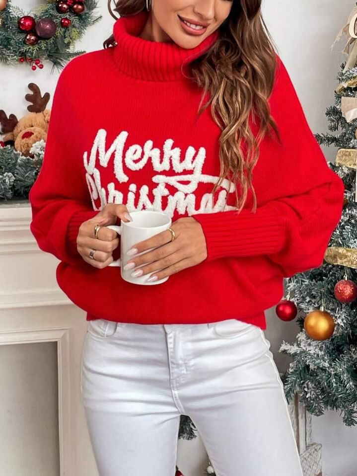Chiquease كنزة صوفية كنزة عيد الميلاد للنساء باللون الأحمر ، ملابس لحلول العام الجديد