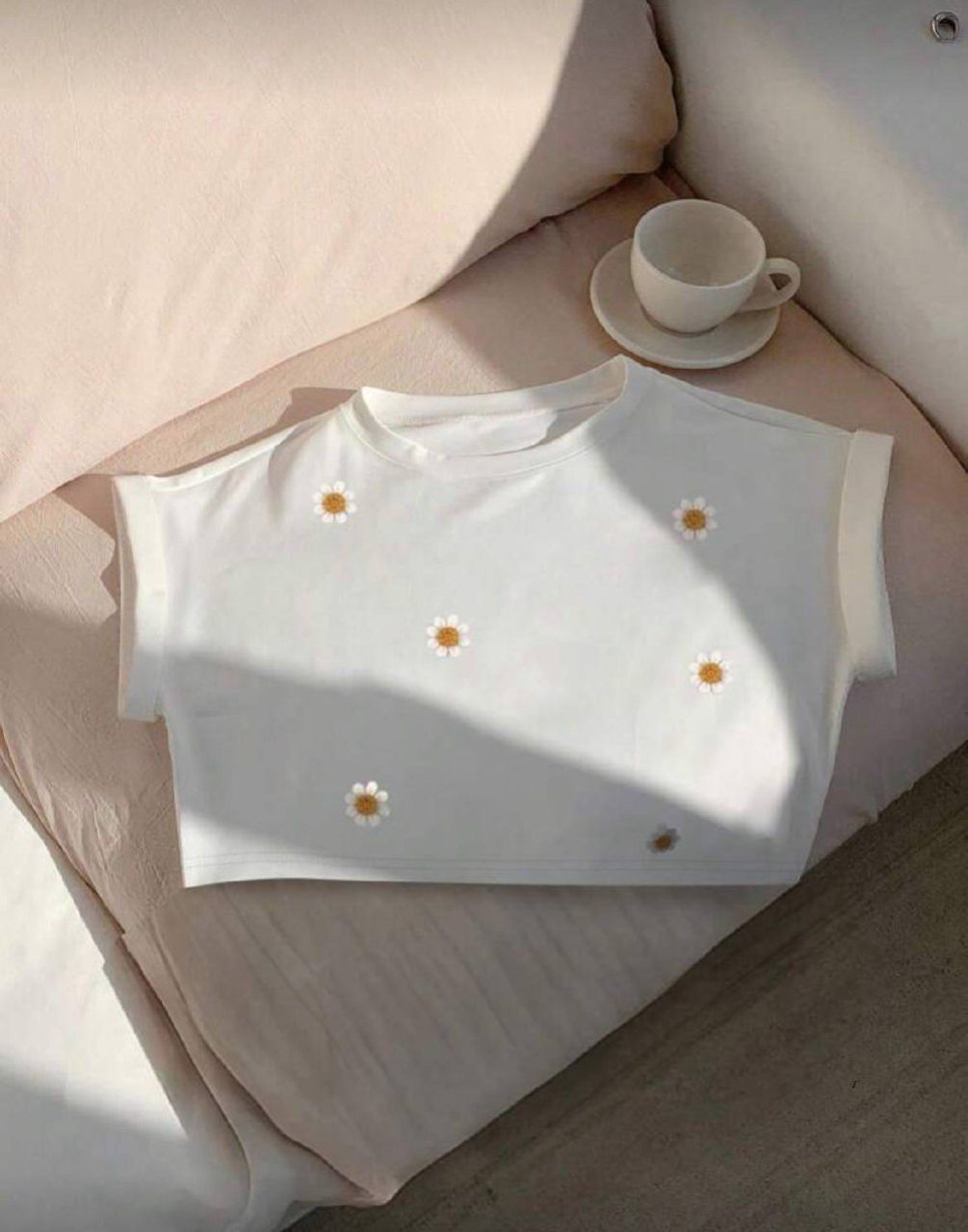 Comfortcana تي شيرت نسائي أنيق وبسيط بطرز زهور البابونج مرتخي بياقة مستديرة وأكمام قصيرة، مناسب للبس اليومي والحفلات في الصيف
