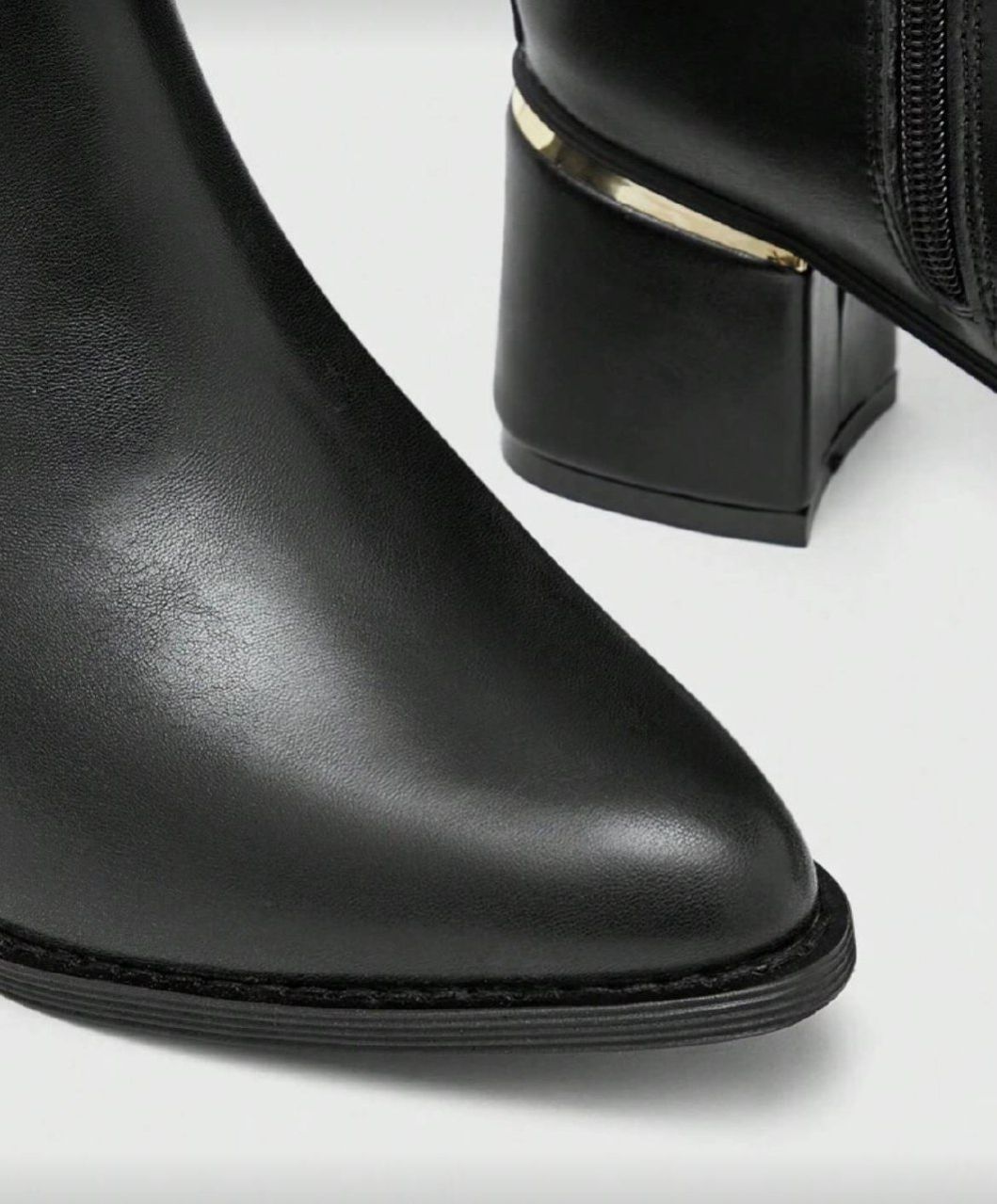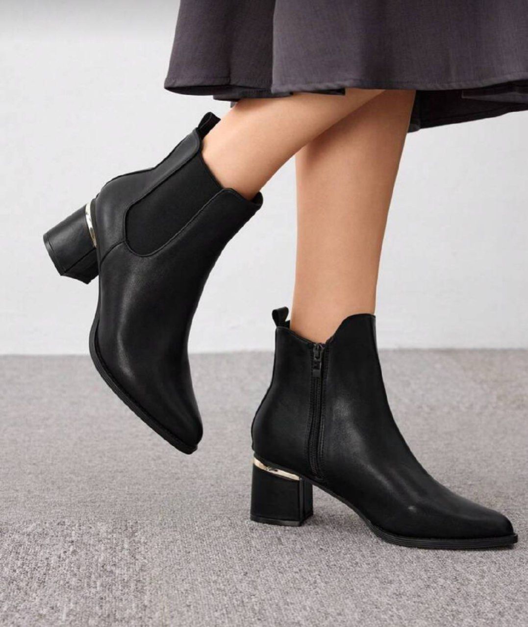 CUCCOO BIZCHIC بوت نسائية ذات رؤوس مدببة، مزينة بنقشات معدنية باللون الأسود، جزمات كاحلية متعددة الاستخدامات للربيع والخريف، بوت صيفية أنيقة للأعمال والأناقة اليومية ولإجازات الربيع والعطلات