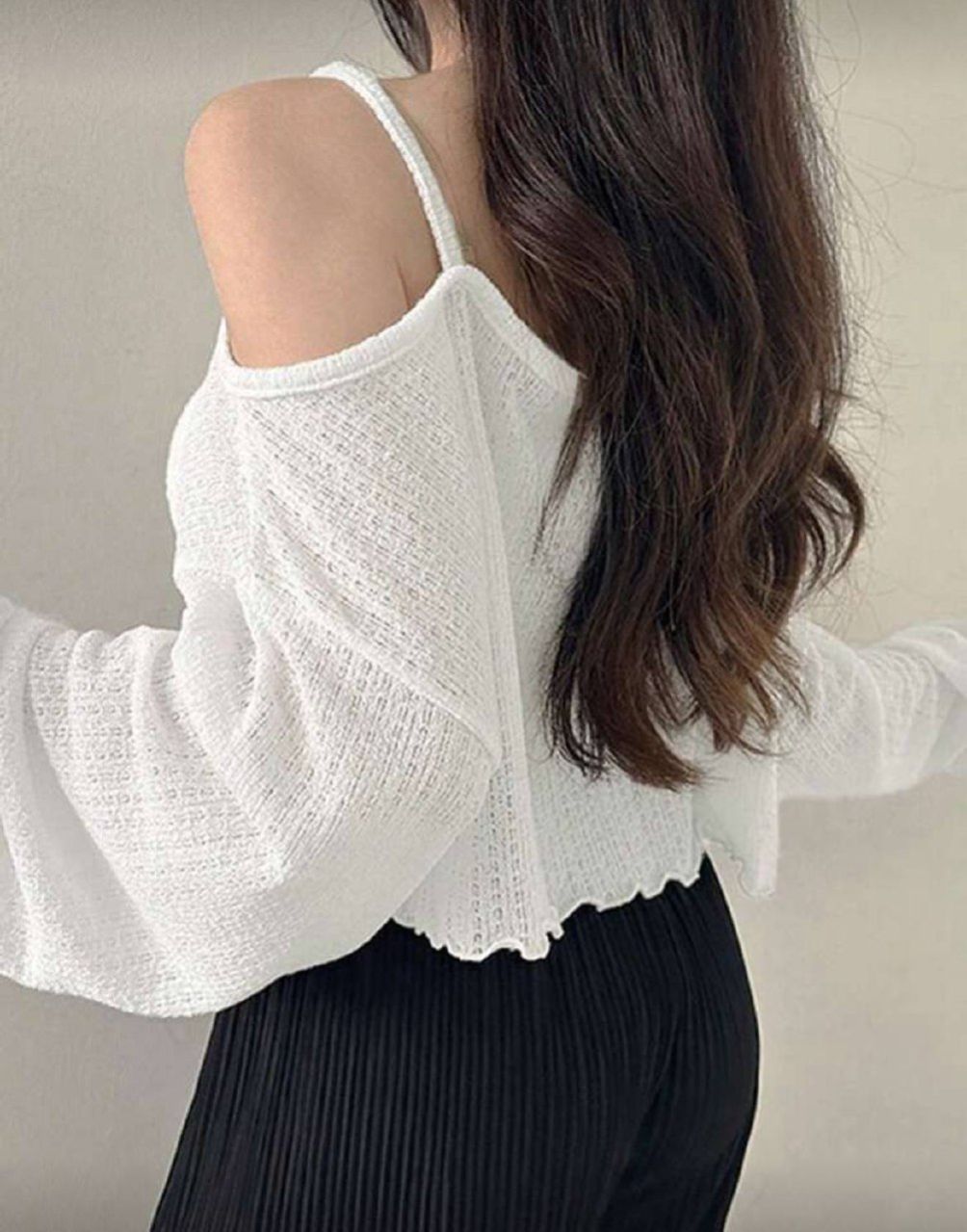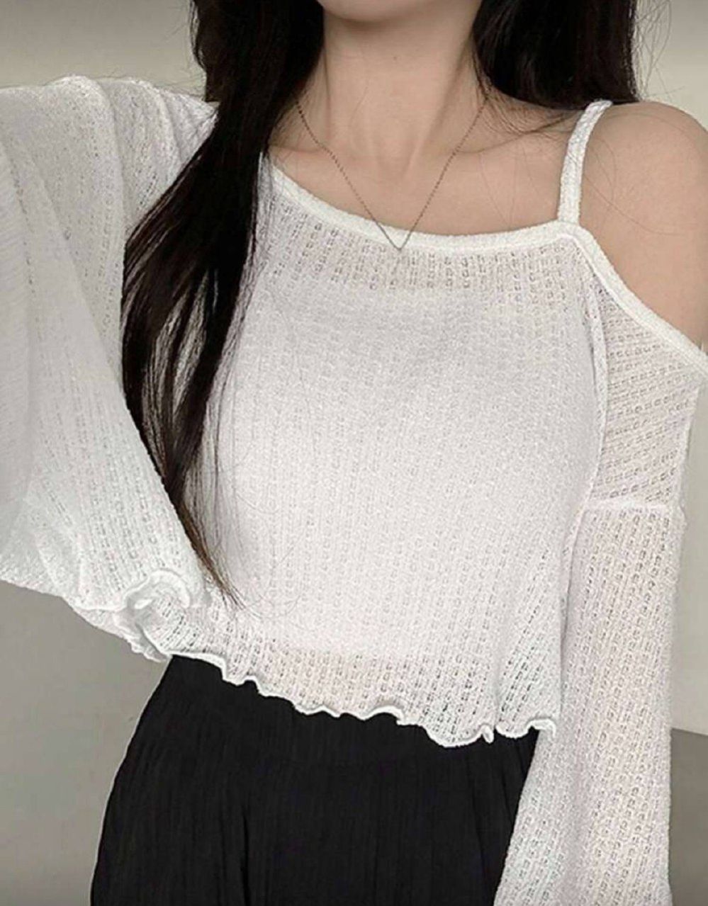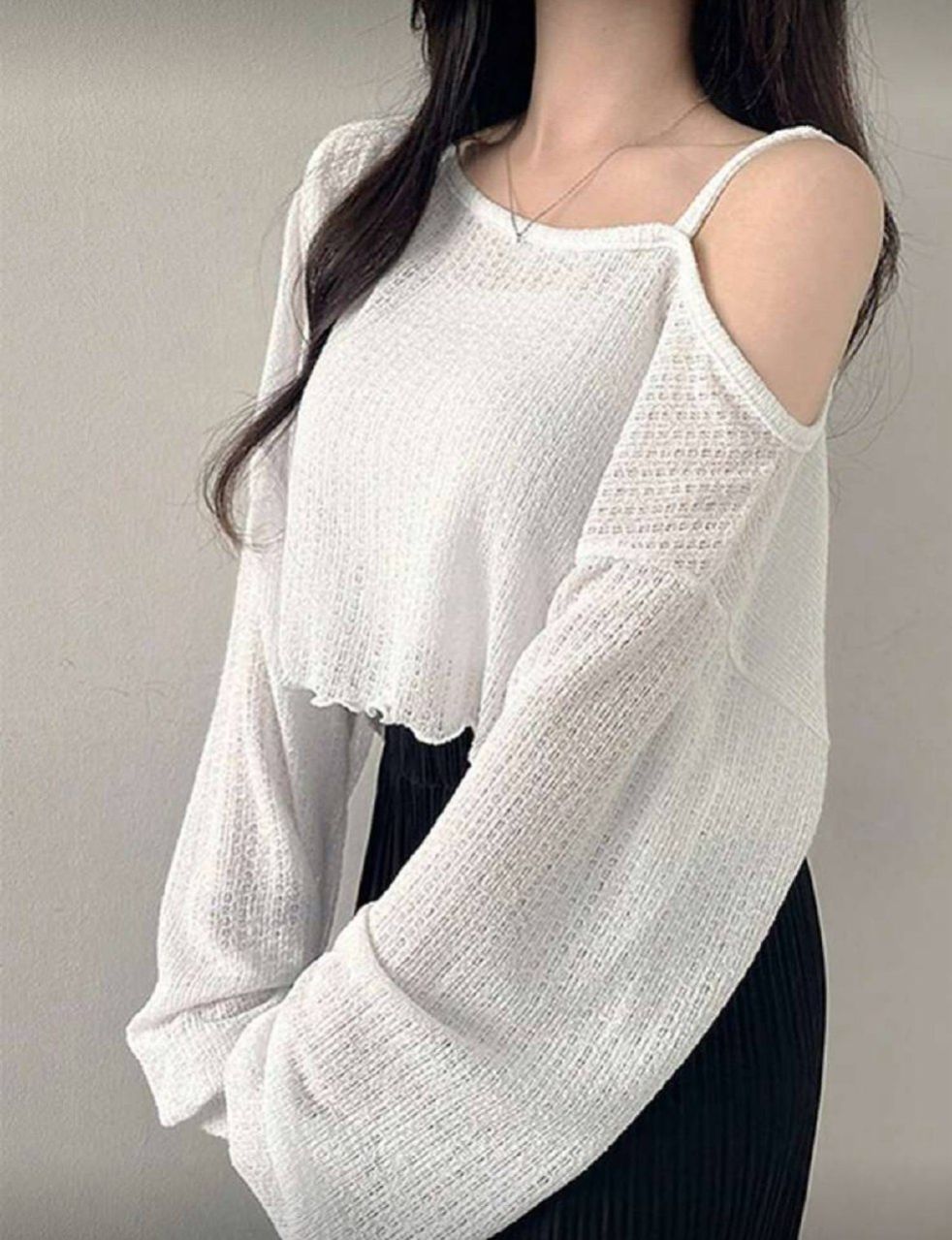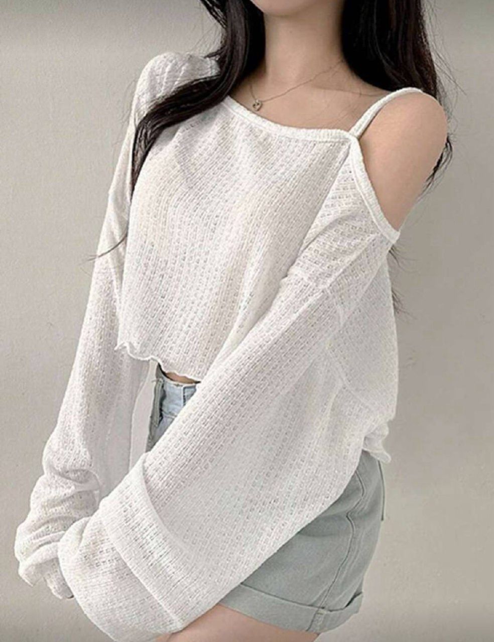 DAZY قميص قصير نسائي كاجوال بكتف مائل وذيل غير متماثل، بلوزة نسائية طويلة الأكمام للخريف، ملابس نسائية للخريف، بلوزة قصيرة نسائية