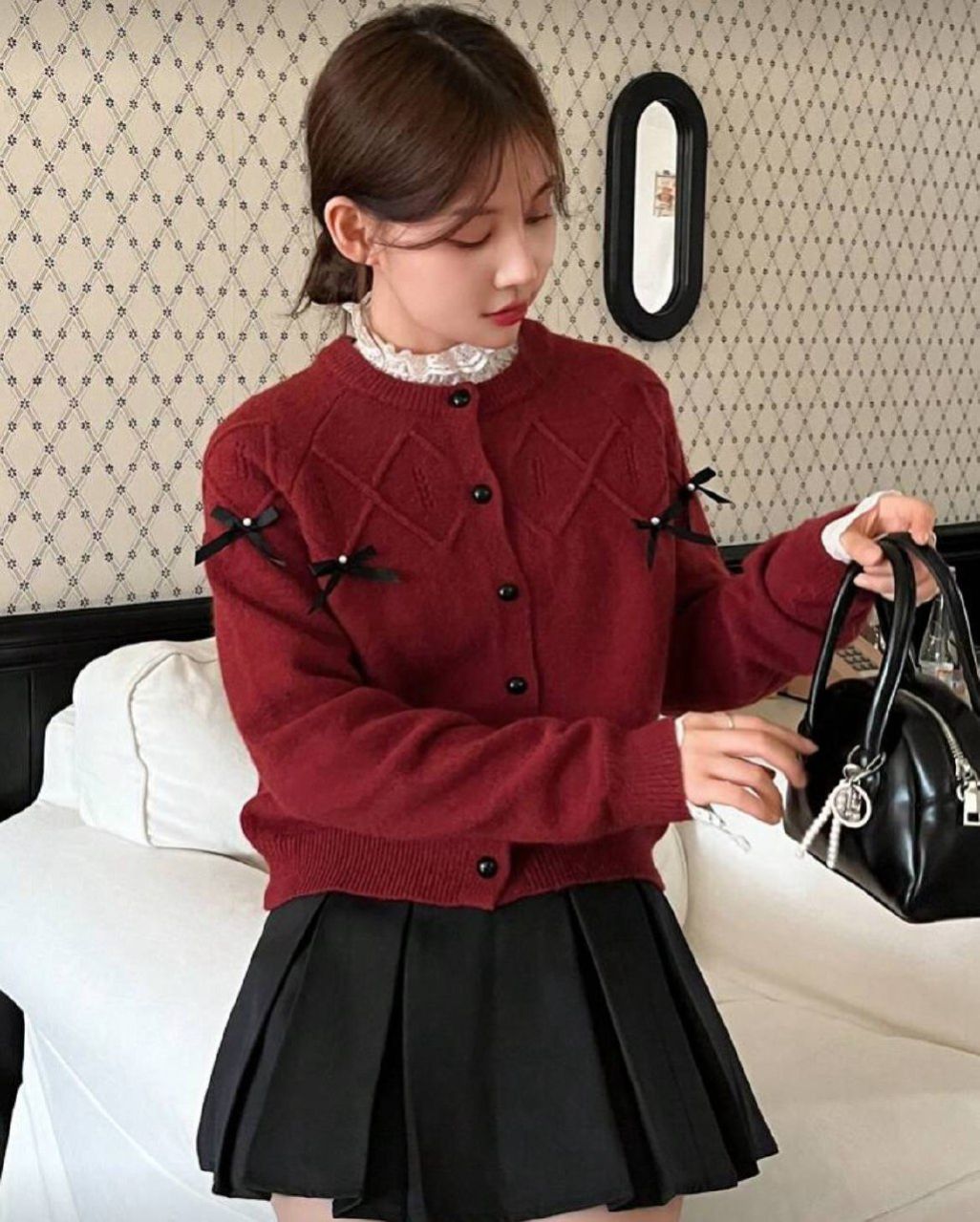 0 Review Of Product DAZY كارديجان نسائي أحادي الصدر بفيونكة، كاجوال بأكمام طويلة، ملابس خريفية