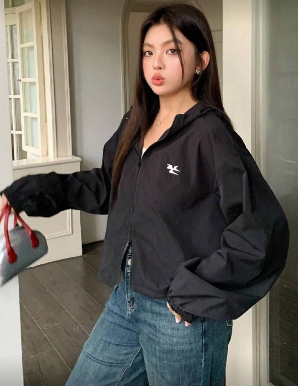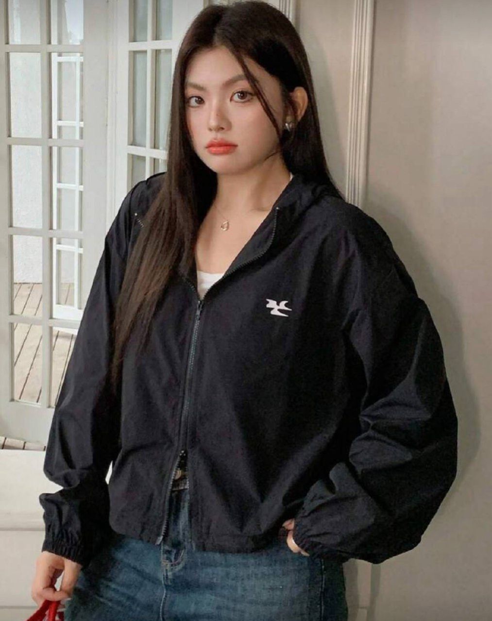 Dazy Plus معطف هوديي مطرز بطبعات فضفاض قصير المقاس الكبير للنساء، ربيع/خريف