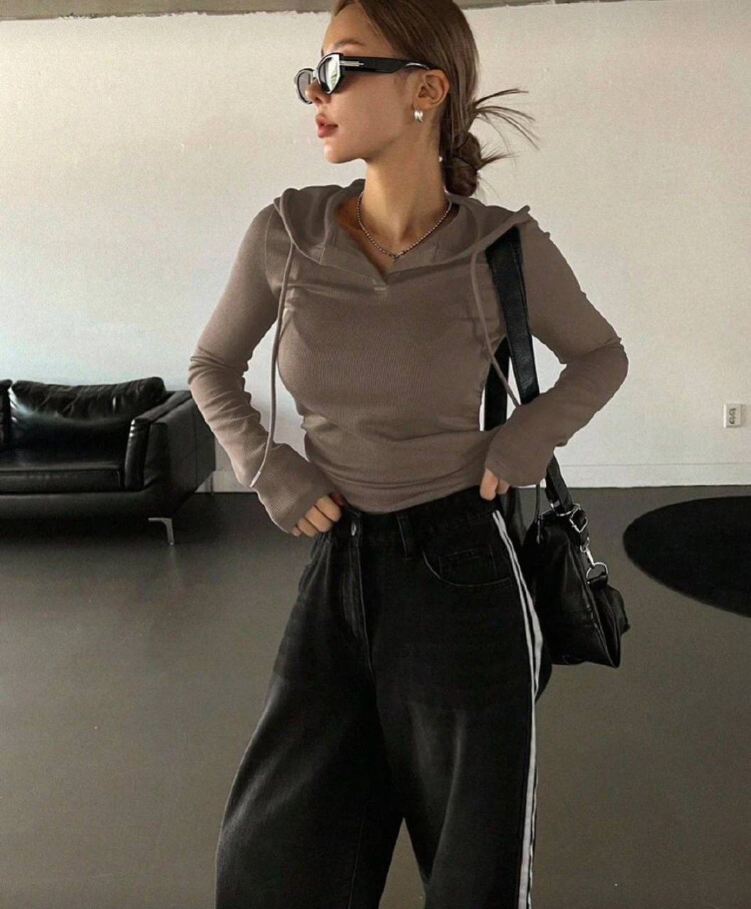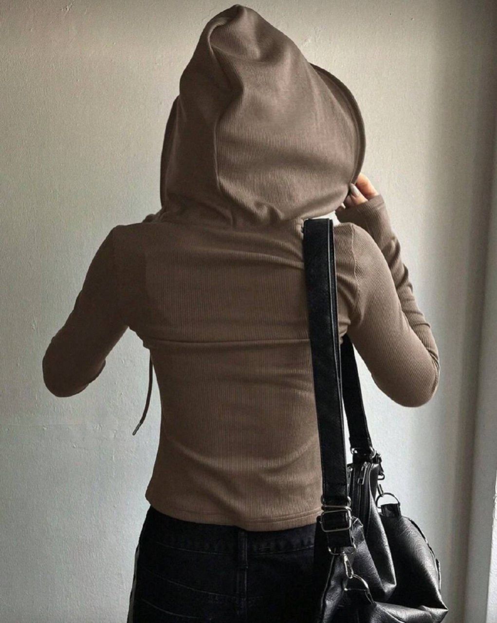 Dazy Star ملابس علوية نسائية بأكمام طويلة ذات لون واحد بتصميم بسيط مع كابوشون، ملابس يومية كاجوال للخريف، ملابس للعودة إلى المدرسة