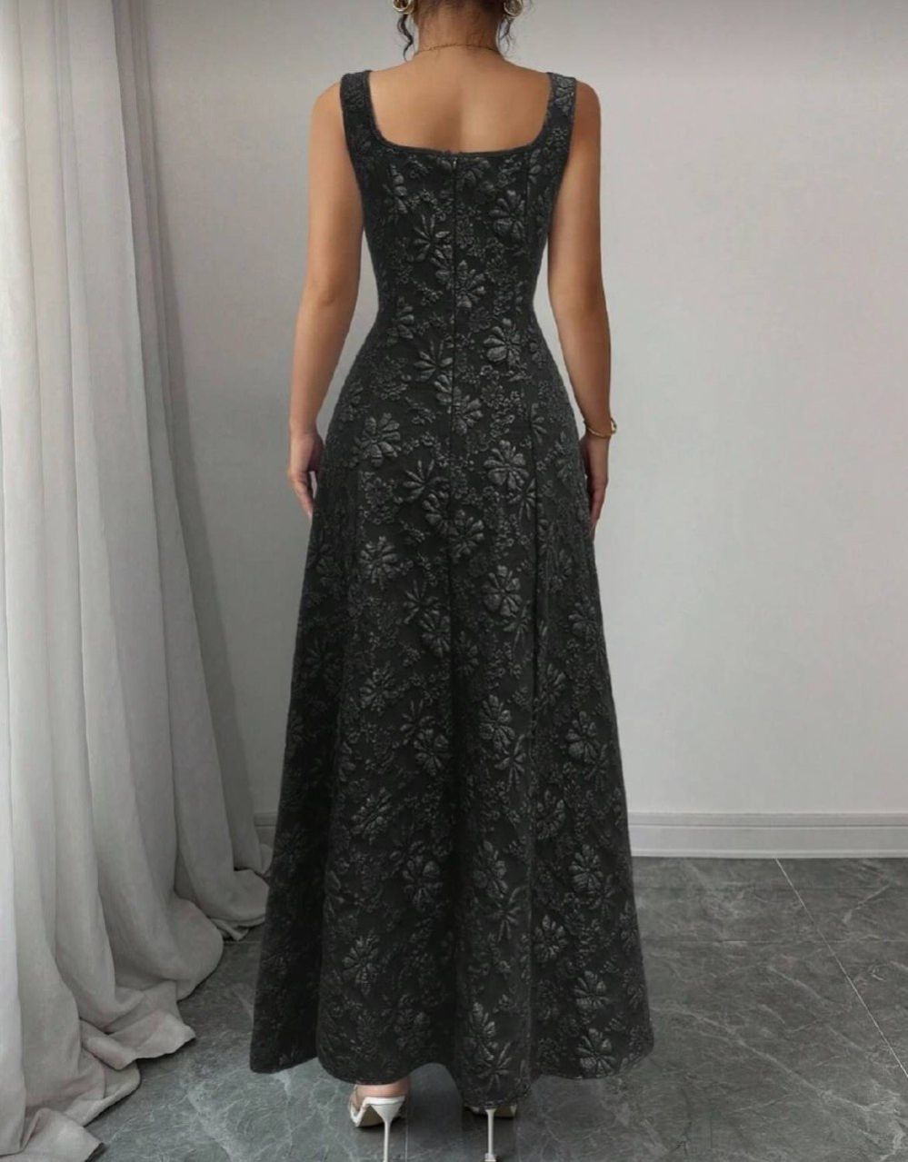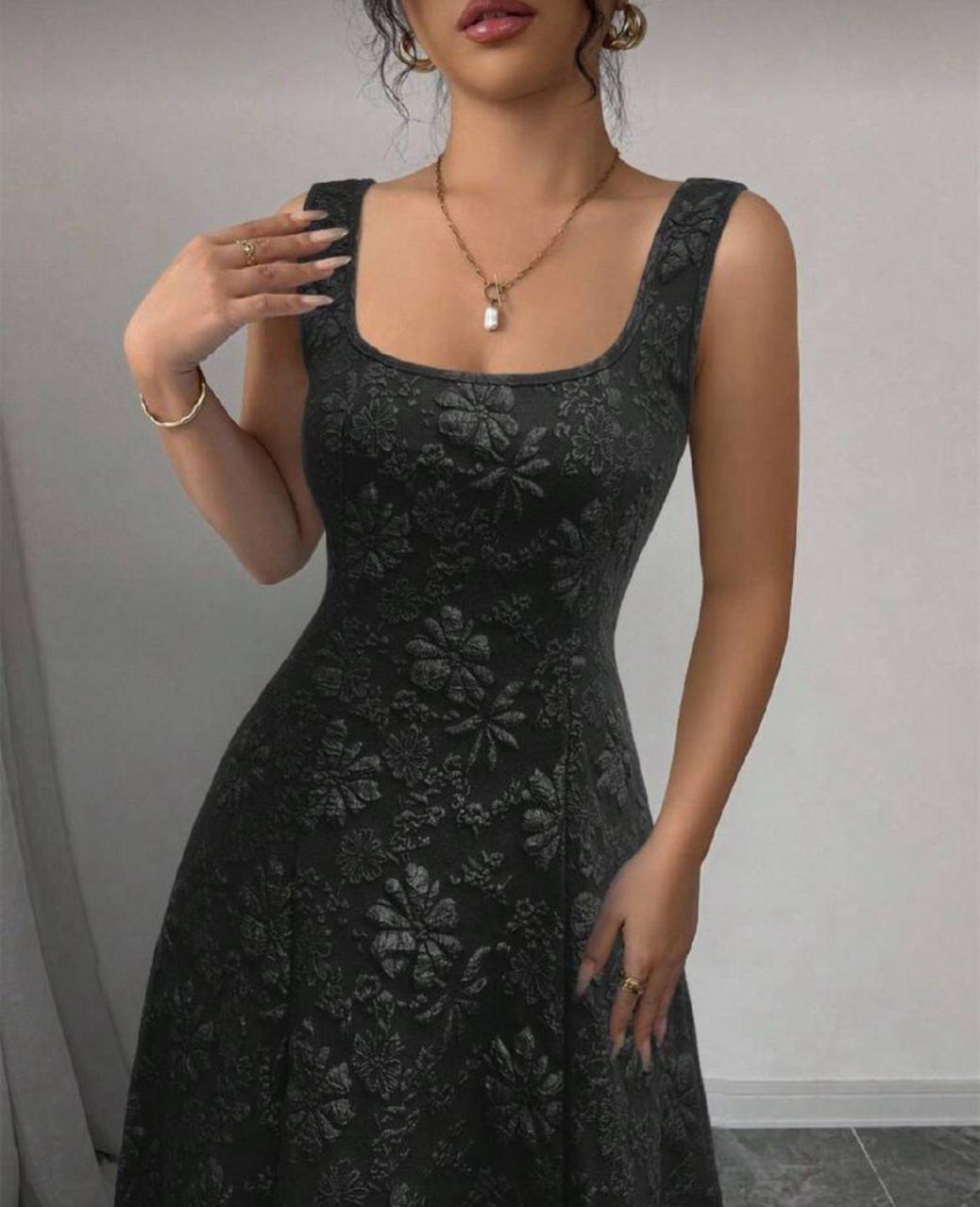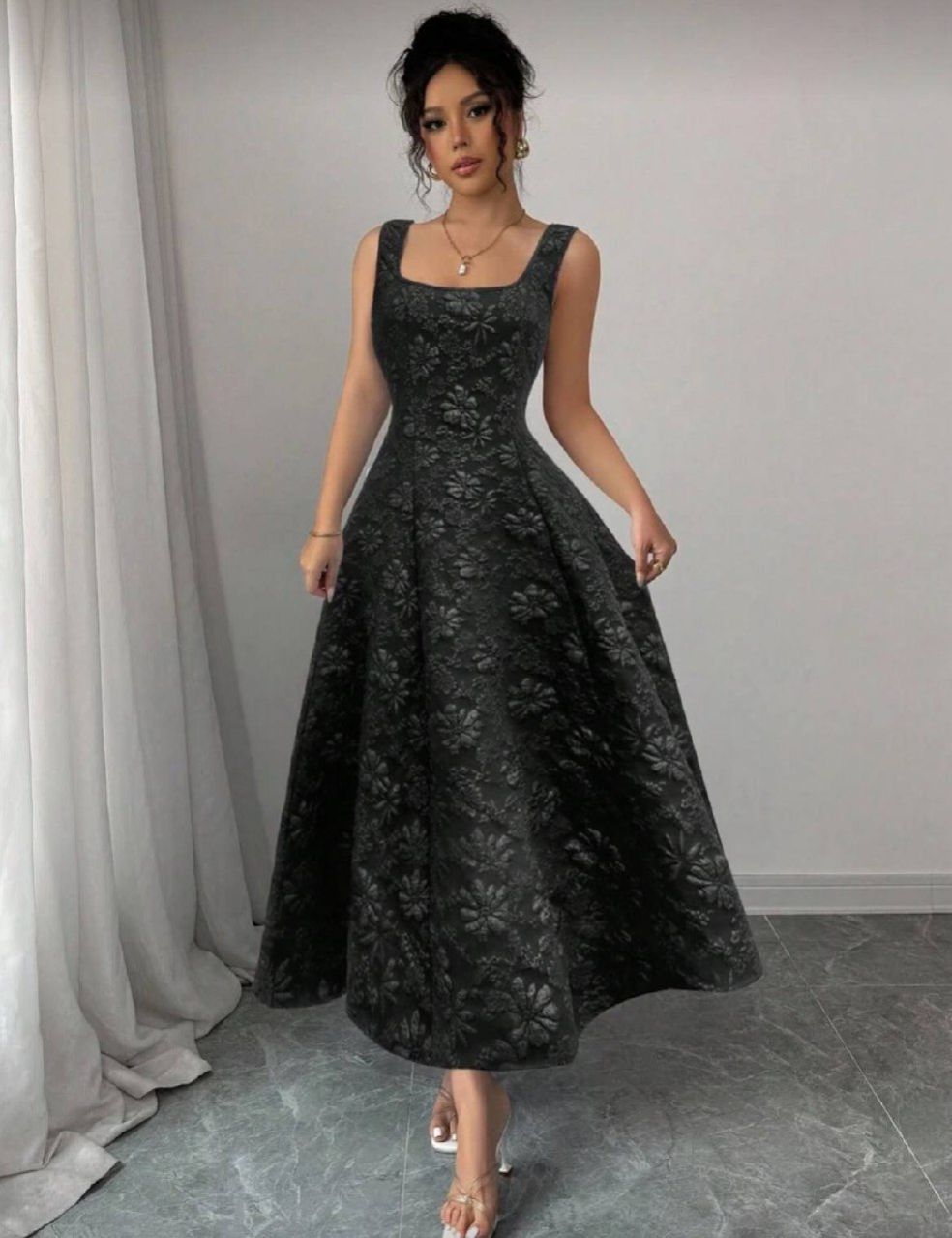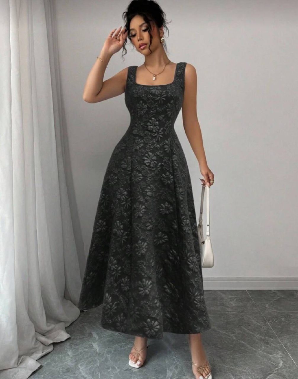 Elenzga فستان منسوج بنمط مزهر مطموس من قماش ذو شريط واسع للنساء، تصميم جديد، طول متوسط ، أناقة وأناقة للسيدة الشابة المتعددة الاستخدامات، مُلطّف وممشق الشكل