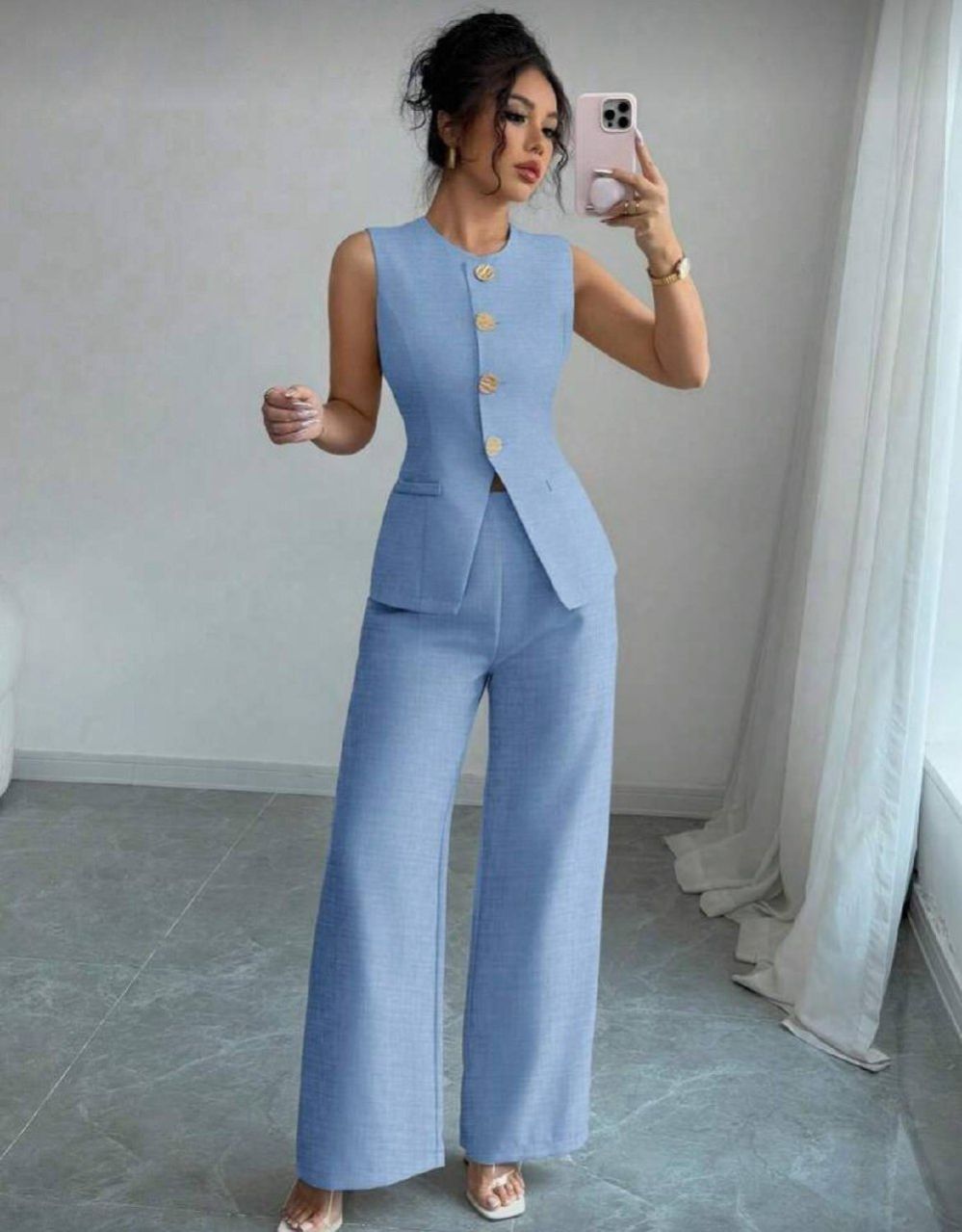 0 Review Of Product Elenzga مجموعة أزرار سستة ذهبية أنيقة للعمل والعطلات على الطراز الفرنسي للنساء