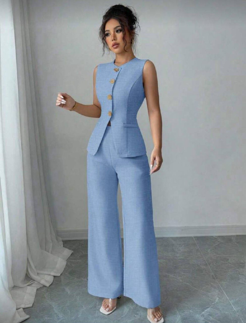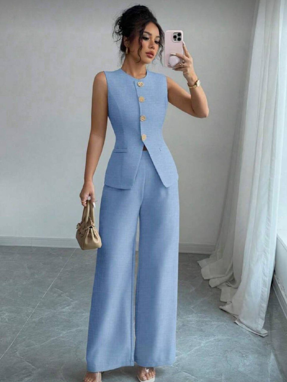 Elenzga مجموعة أزرار سستة ذهبية أنيقة للعمل والعطلات على الطراز الفرنسي للنساء