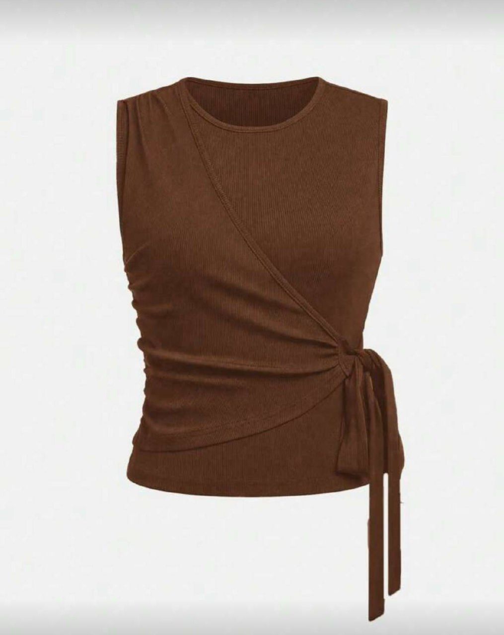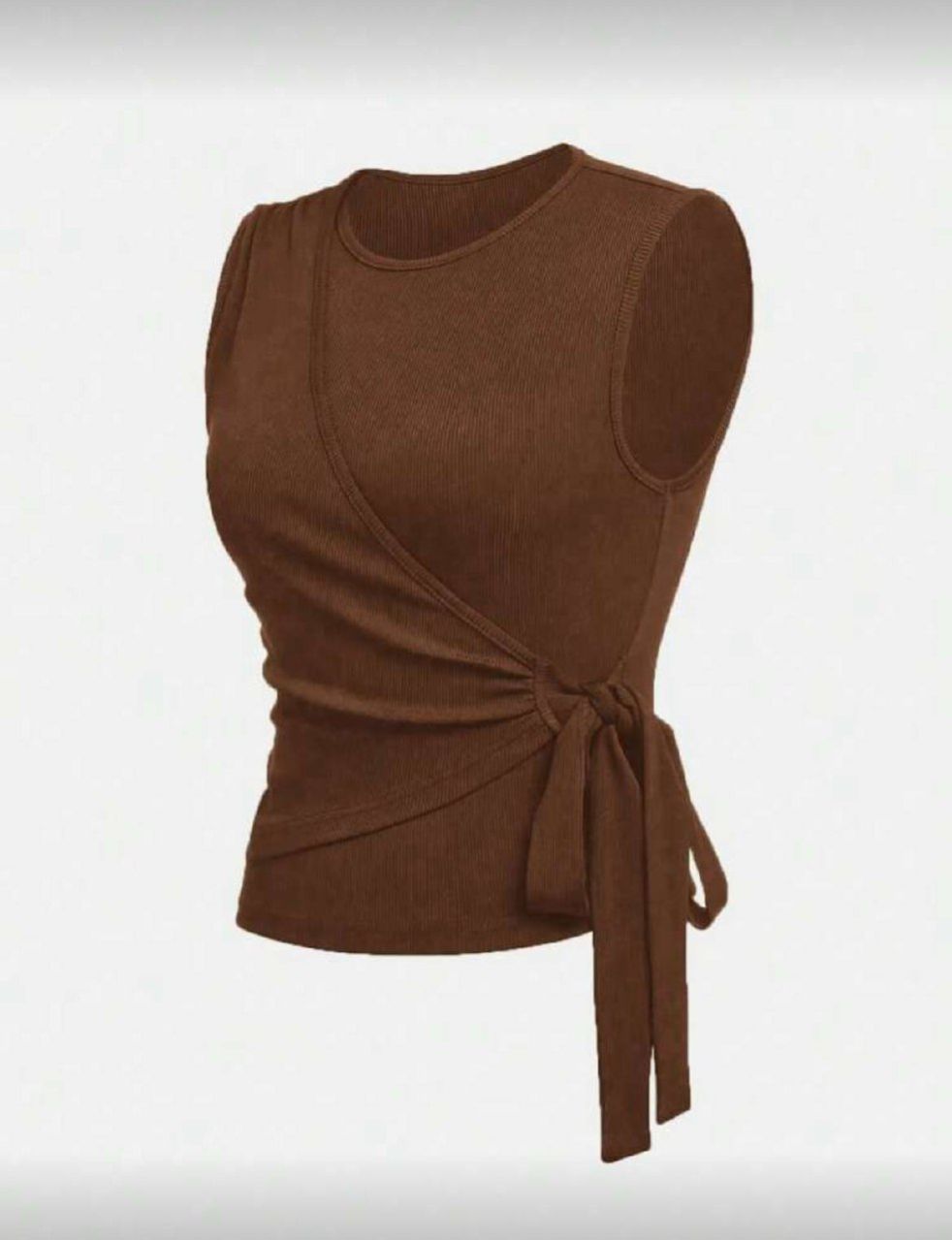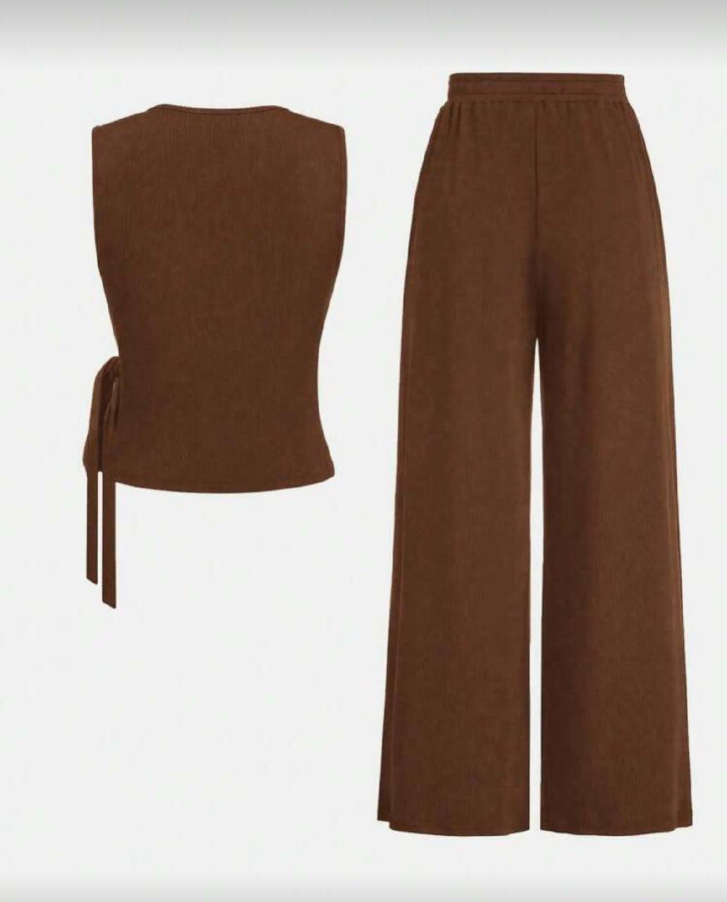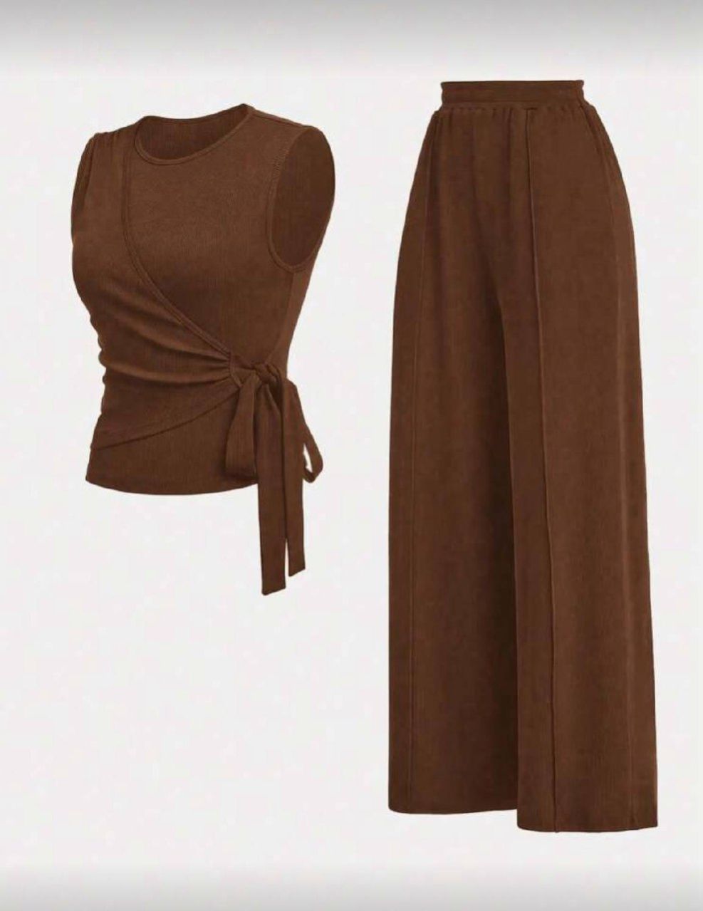 0 Review Of Product GlowEve مجموعة ملابس علوية بدون أكمام عنق طاقم ولبس أسفل طويل من قطعتين للنساء، لون سادة