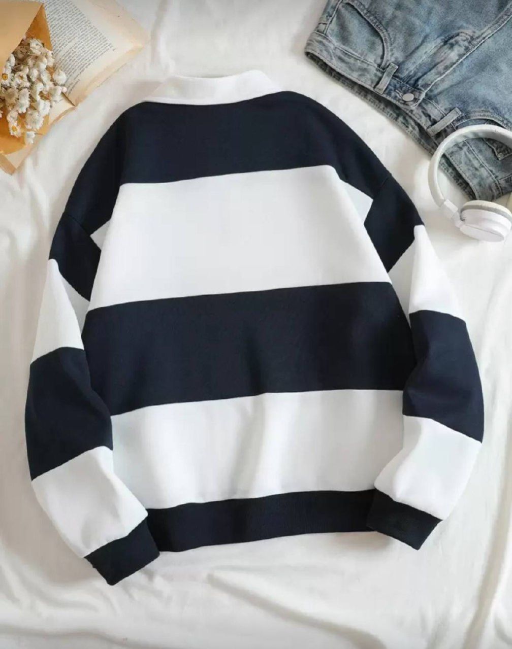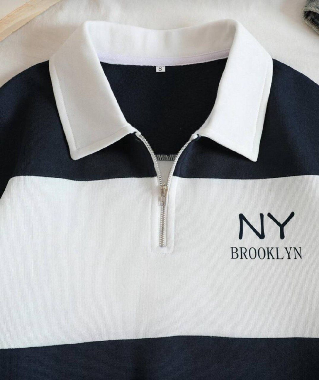 INAWLY بلوزة رياضية بأكمام طويلة مع قفل ربع الطول وخطوط ملونة ومطبوعة على شكل أحرف، كتف منسدل
