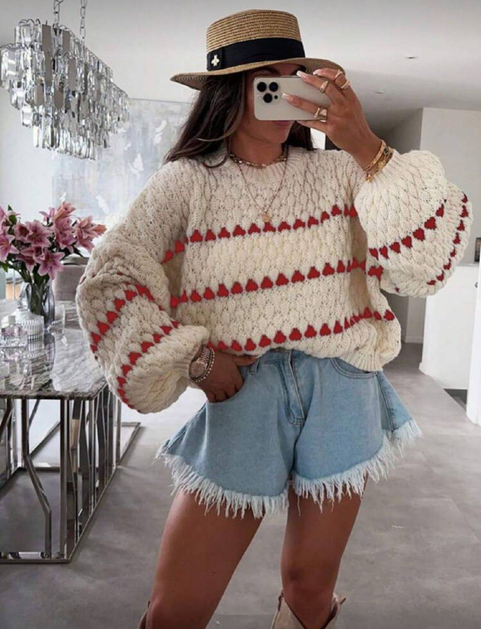 0 Review Of Product INAWLY كنزة صوفية كاجوال فضفاضة ذات أكمام طويلة نصف، ملابس علوية قطعة ملائمة للنساء