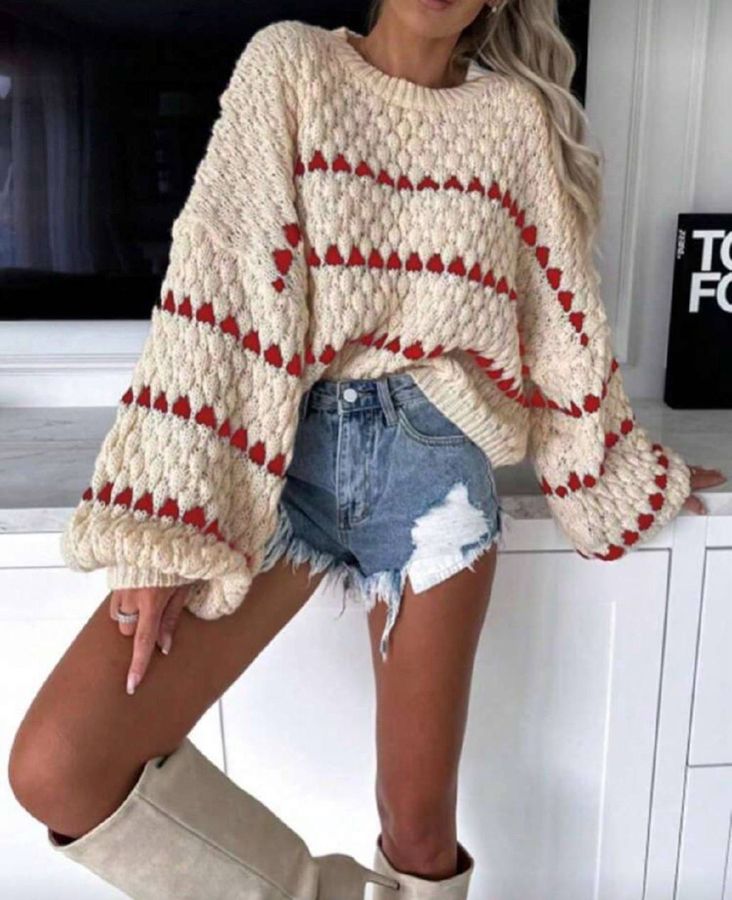 INAWLY كنزة صوفية كاجوال فضفاضة ذات أكمام طويلة نصف، ملابس علوية قطعة ملائمة للنساء
