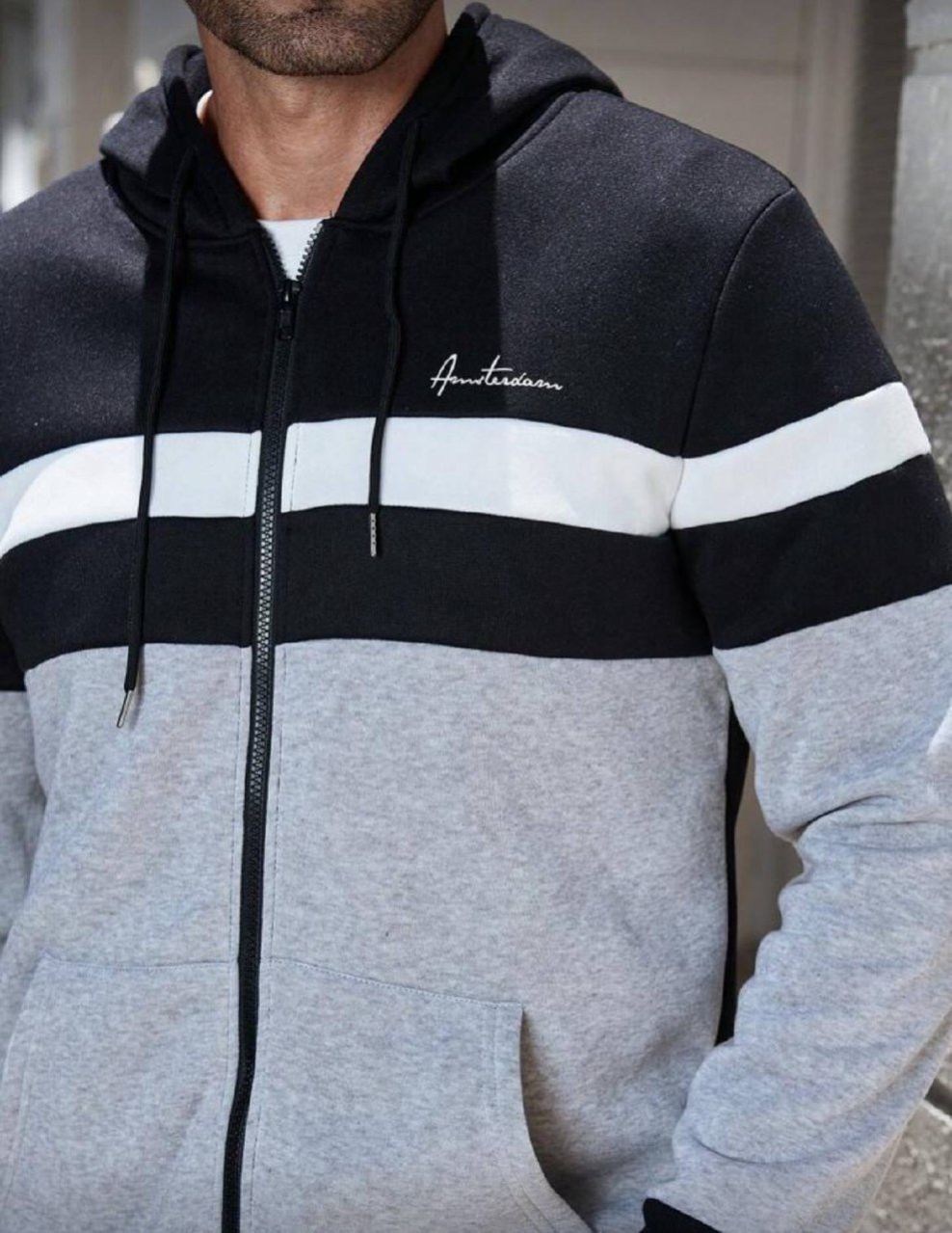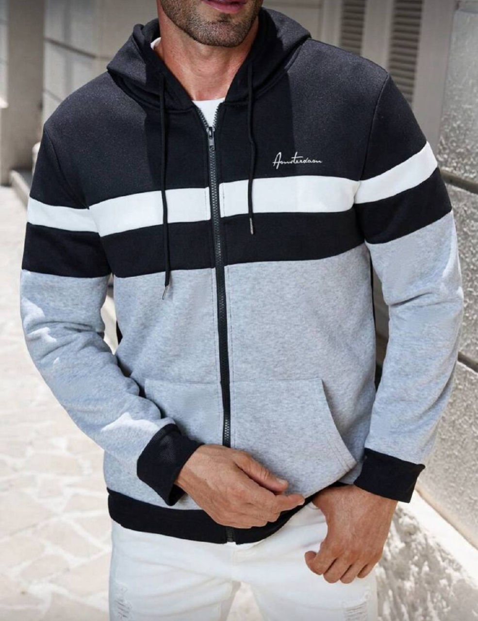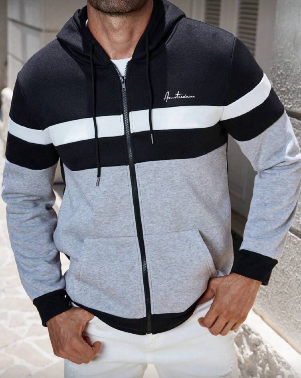Manfinity CasualCool سترة رياضية كاجوال ذات أكمام طويلة للرجال للربيع والخريف، مطبوعة بشعار واخطوط، سحاب أمامي وقطع لونية، مناسبة للاستخدام اليومي، هدية للأصدقاء والأزواج والأحباء