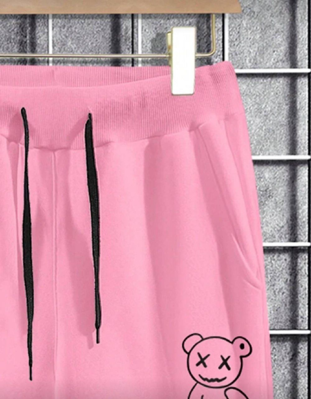 Manfinity Homme بلوزة رياضية مطبوعة بالدب وبنطلون رياضي بخصر رباط، للخروج، رسومات، مضحك، سادة، متطابق للأزواج، ملابس الخريف