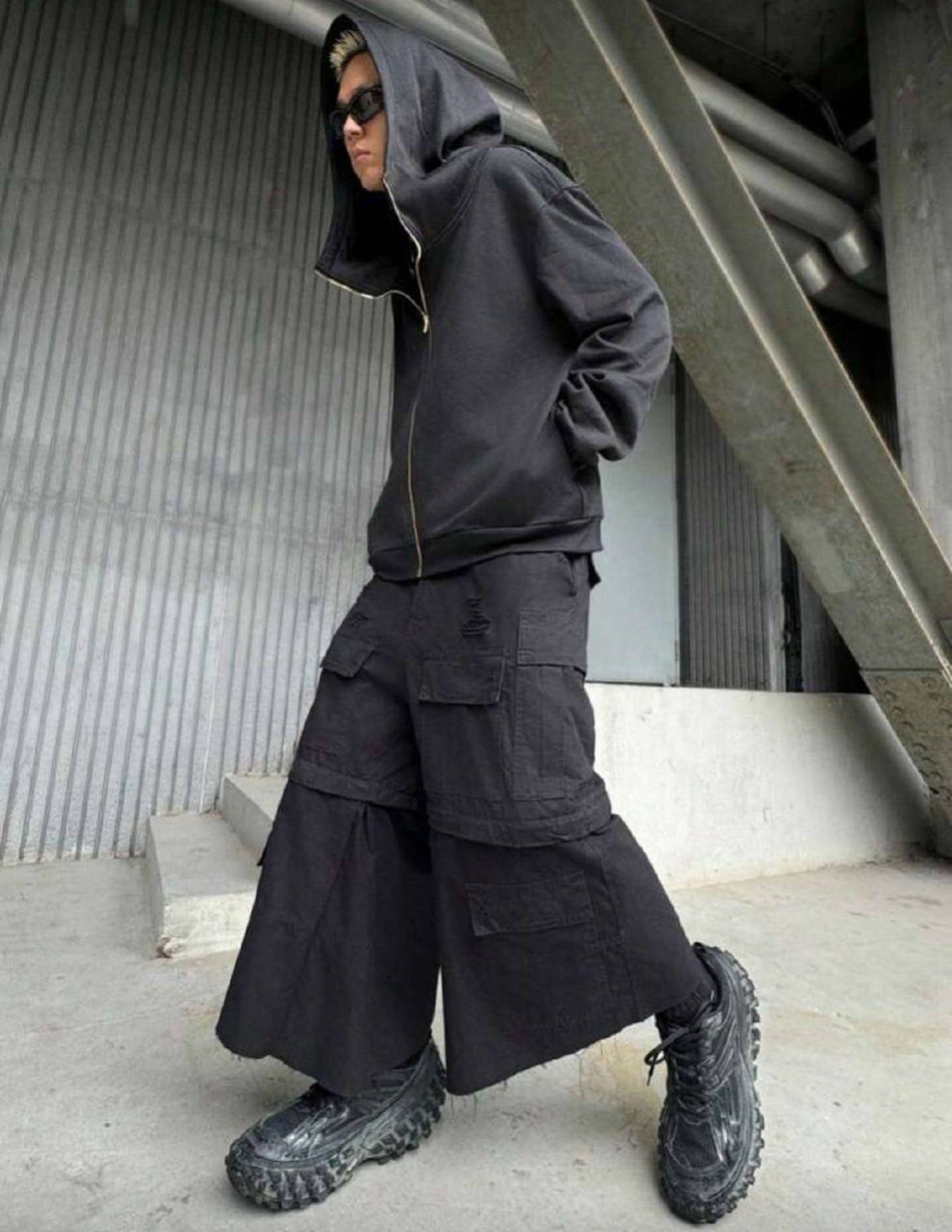 0 Review Of Product Manfinity VCAY 1 قطعة هودي كنزة رقبة عالية بأكمام طويلة سميكة بطراز عصري مبتكر أسود للرجال، بقصة واسعة وطراز الستينيات، مناسب للخريف وعيد الهالوين، بتصميم نظيف وسميك ودافئ للشتاء