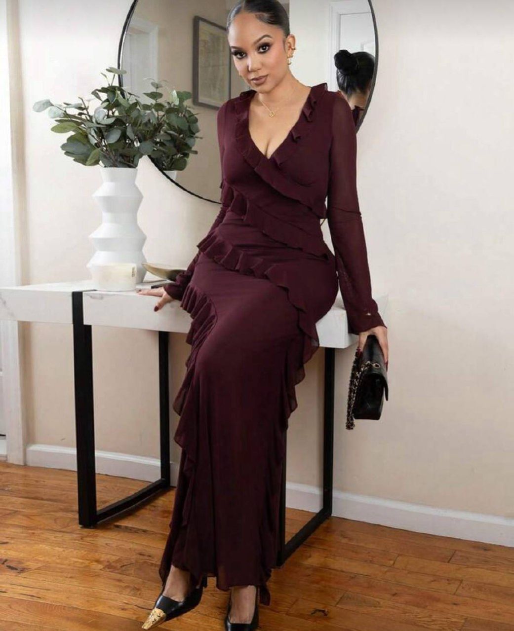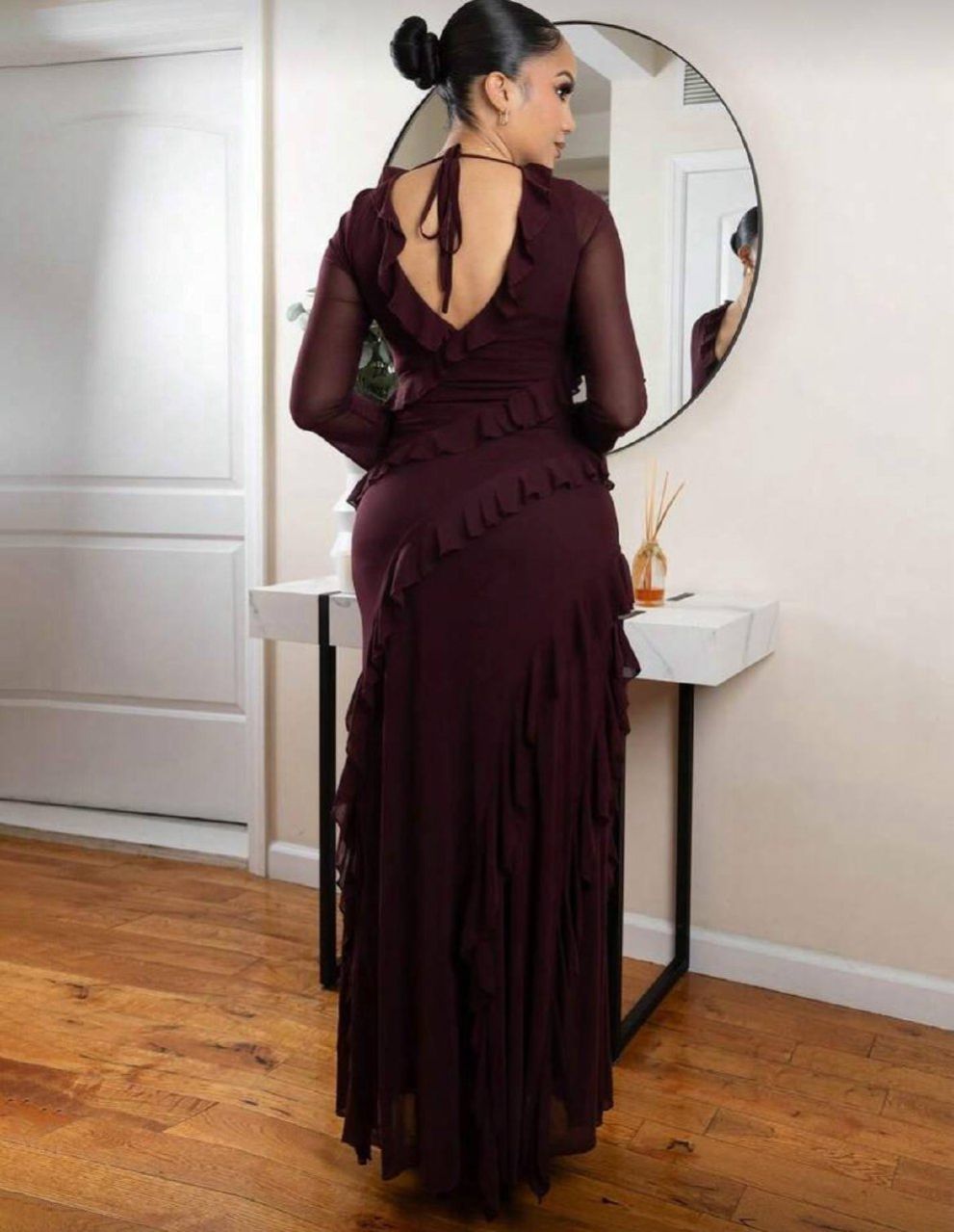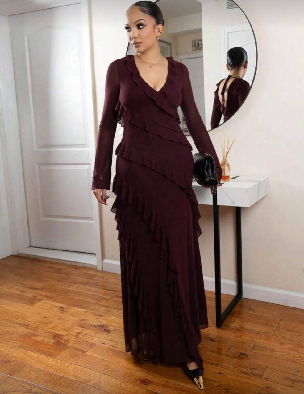 Melissa Matos فستان طويل مكسر الأكمام حتى الكاحل ذو طابع رومانسي، فساتين أنيقة للمرأة للمناسبات الرسمية مثل عيد الحب والعطلات، فساتين متوسطة الطول للصيف، فساتين كاجوال، فساتين زفاف وأعياد الميلاد، فساتين سهرة للخريف والصيف