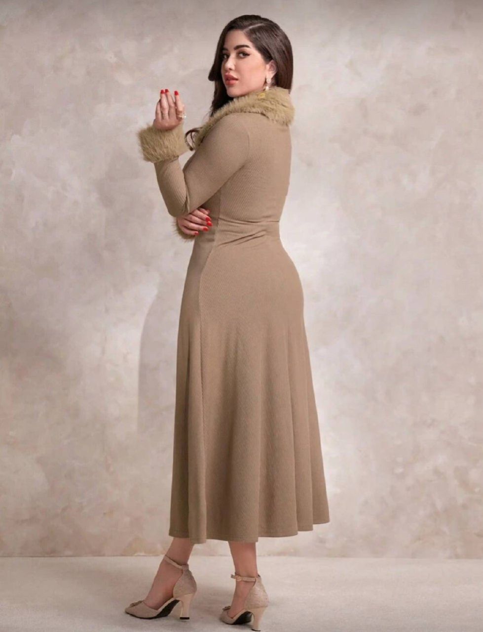 0 Review Of Product Modelyn فستان سهرة طويل للنساء، مصنوع من صوف مخلوط، ذو ياقة مفحة، بأسلوب عربي أنيق